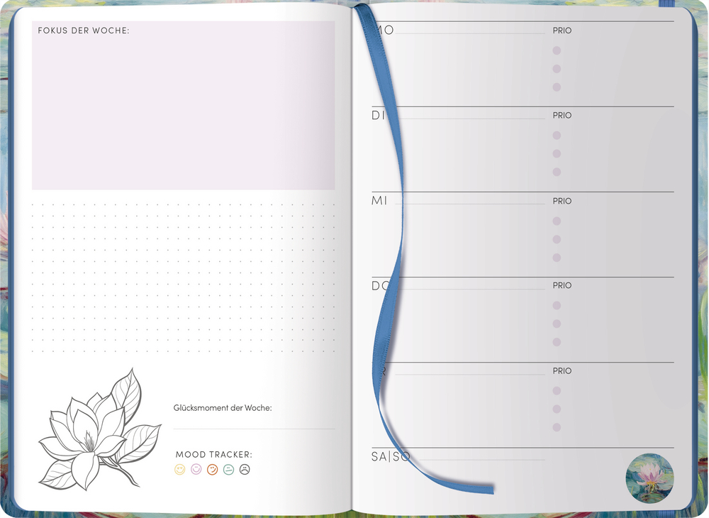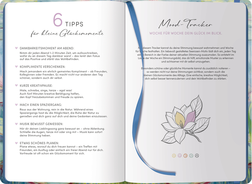 Dieser immerwährende Glücksplaner für jede Woche begleitet dich dabei, bewusster, achtsamer und mit mehr Freude durch deinen Alltag zu gehen. Jede Woche findest du Platz für deine wichtigsten Erledigungen, deinen persönlichen Fokus und besondere Glücksmomente.