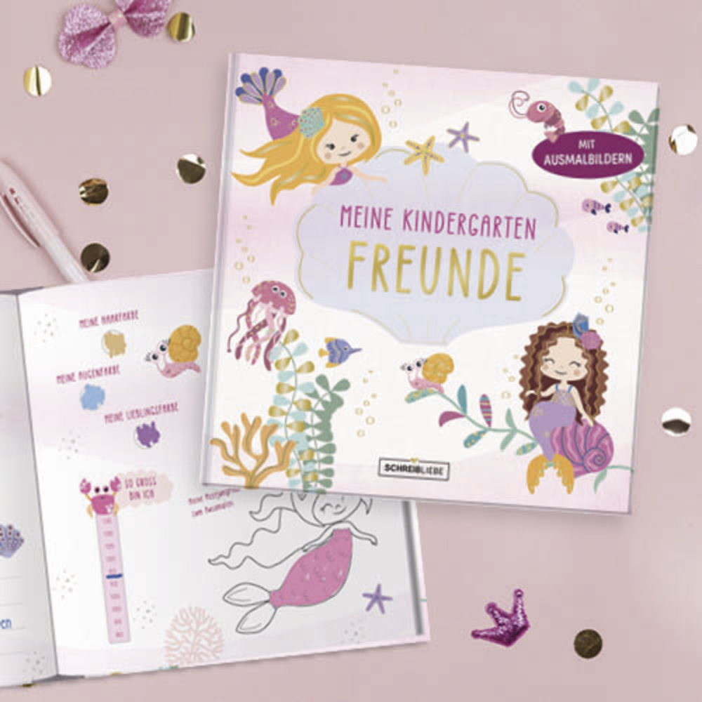 Dieses zauberhafte Freundebuch entführt dich in die Welt der Meerjungfrauen und Unterwasserwesen. Es bietet 30 Plätze für Dich und deine Freunde. Hier könnt ihr in eine andere Welt eintauchen und euch mit Fotos und individuellen Antworten verewigen. Jede Seite ist mit einem passenden Ausmalbild versehen. Perfekt, um Erinnerungen an aufregende Zeiten mit deinen Freunden festzuhalten!