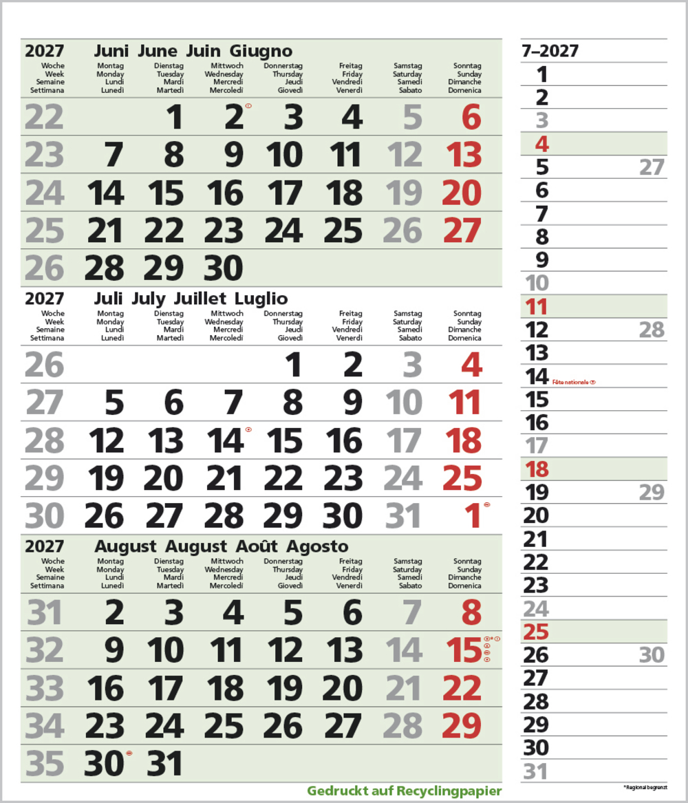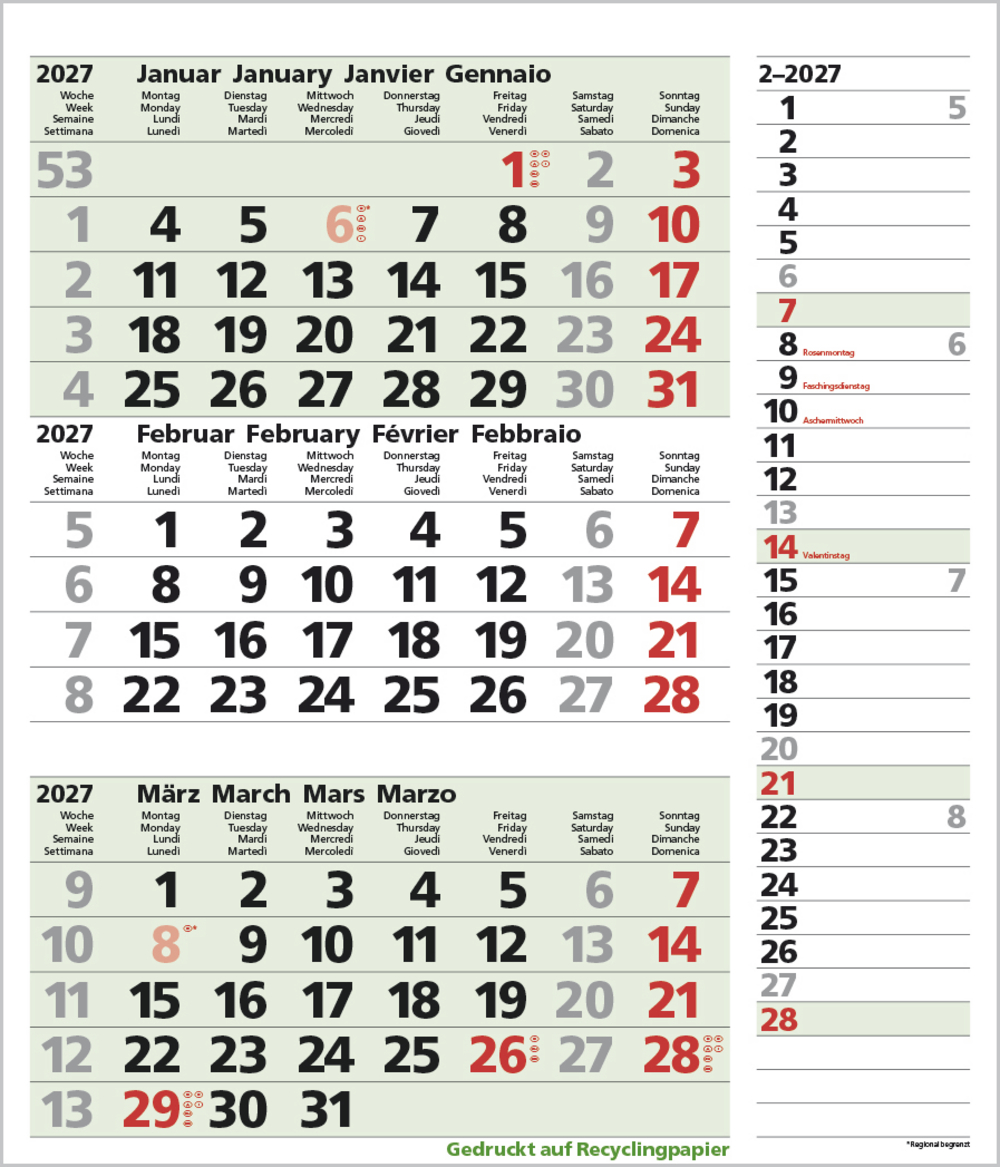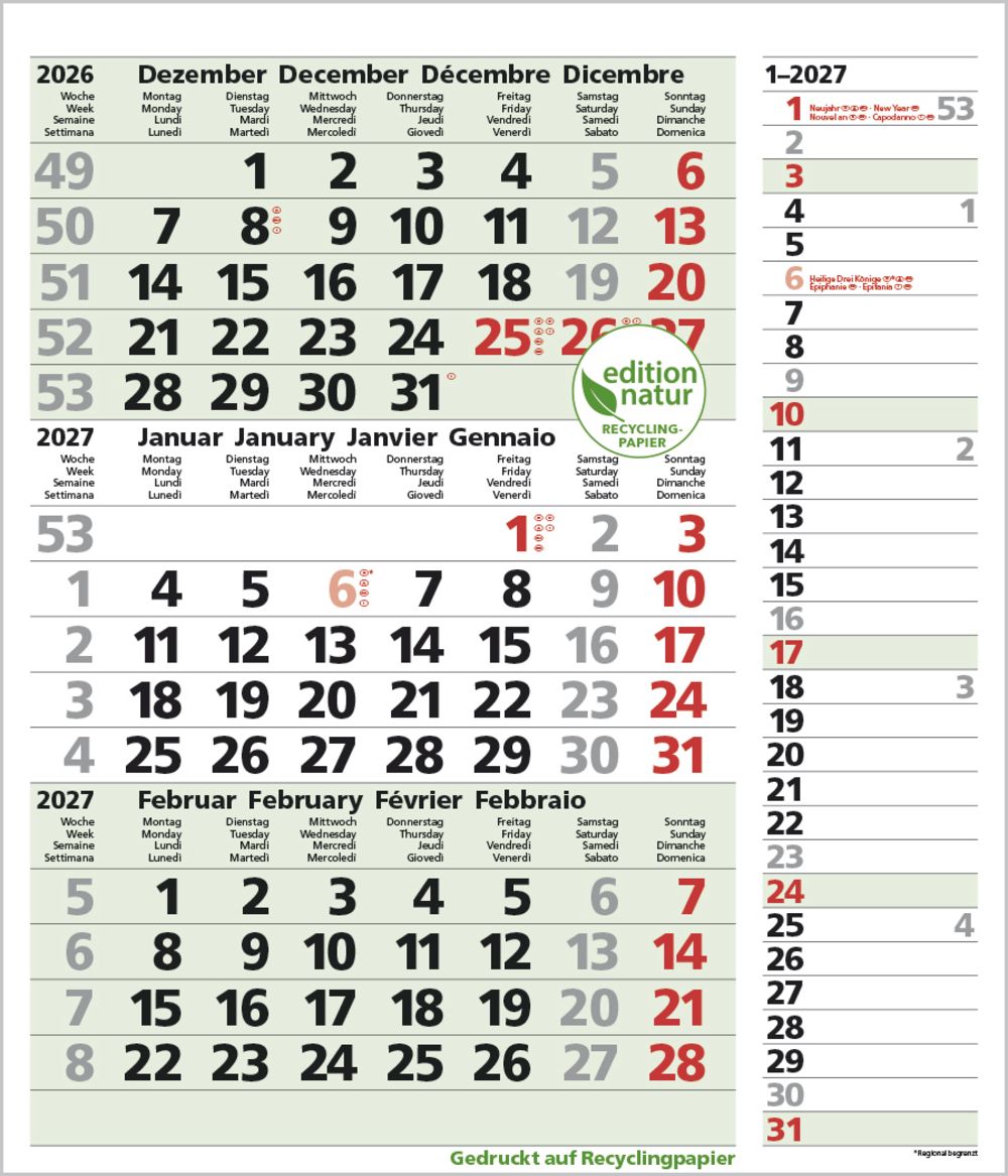 • 1 Seite 3 Monate im überblick; umweltfreundliches Recyclingpapier.