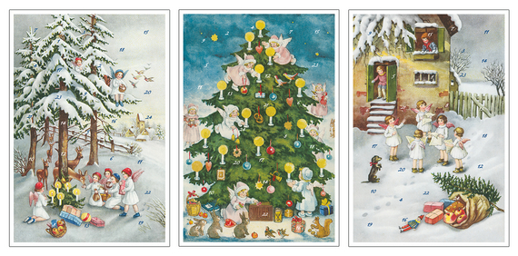Die Weihnachtsengel haben viel zu tun in der Adventszeit: Baum und Kranz schmücken und natürlich das Läuten der Glocken, damit alle zusammenfinden zum großen Fest … Diese zauberhaften Adventskalender-Karten, entstanden nach Originalvorlagen aus den 30er- und 40er-Jahren des letzten Jahrhunderts, wecken Erinnerungen an die Kindheit und die Sehnsucht nach einer friedvollen Weihnachtszeit. Ein nostalgischer Weihnachtsgruß, wie er schöner nicht sein kann! Und in jedem Fall ein ganz besonderes Geschenk für Sammler und Nostalgiefans, Kinder und Enkelkinder oder einfach nur für sich selbst.