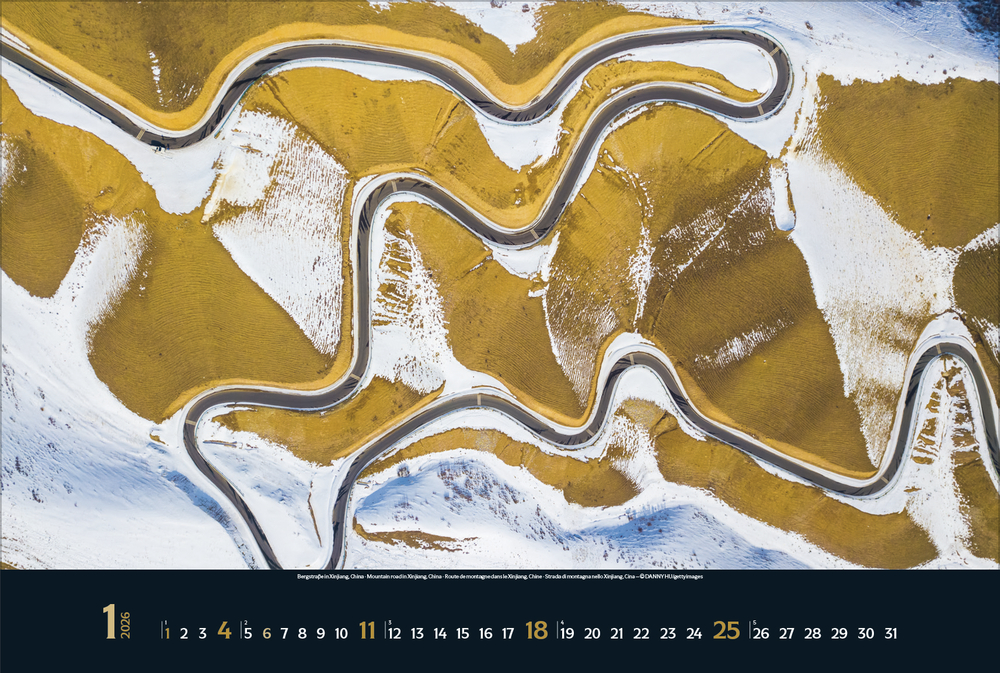 Faszinierende Ansichten aus der Drohnenperspektive bietet dieser Panoramakalender. Ob Städte, Landschaften, Naturphänomene oder von Menschen erzeugte Bewegungen – von oben fotografiert zeigen sich dem Betrachter spannende Muster und Szenerien. Ein Must-have für alle, die sich für Drohnenfotografie begeistern oder das Kunstwerk Erde aus neuen Blickwinkeln entdecken möchten.