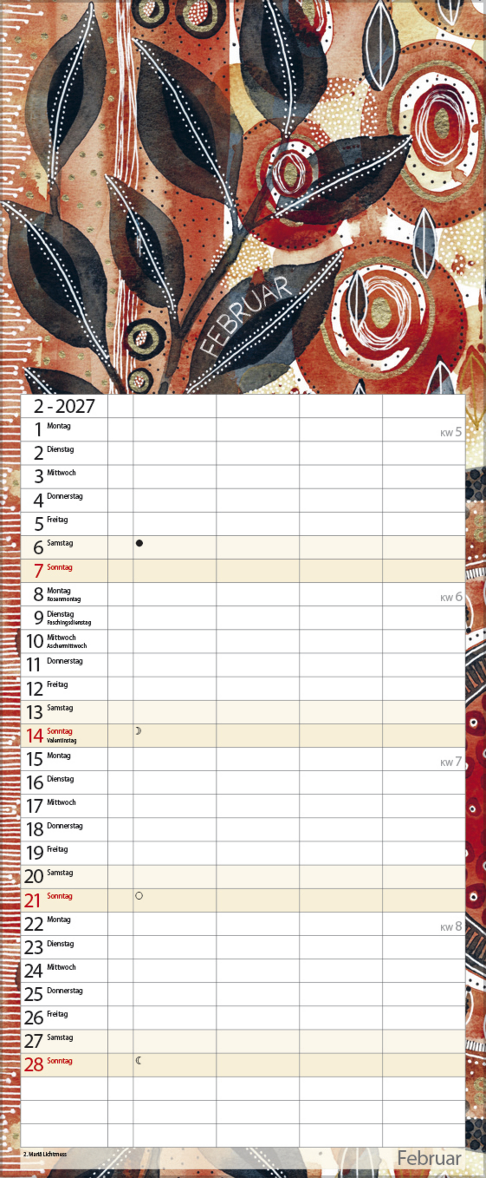 - Terminkalender mit viel Platz für Eintragungen, ohne störende Bilder in den Spalten