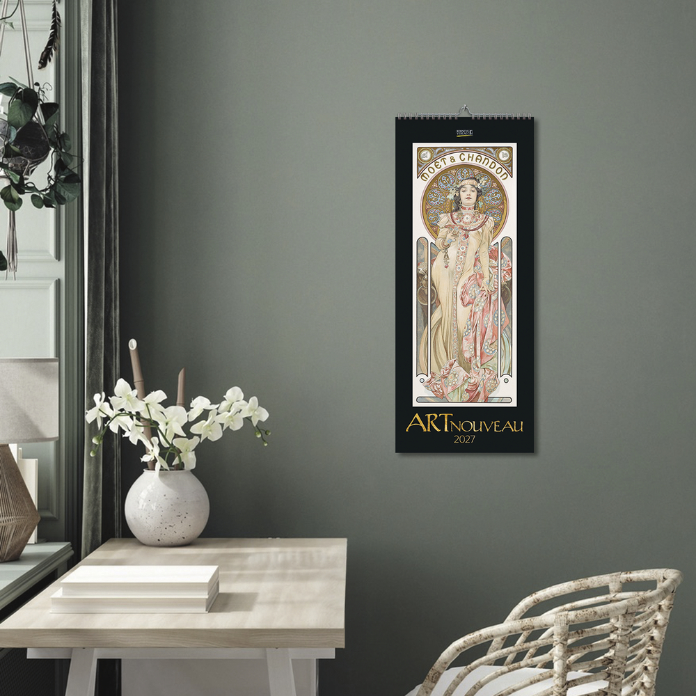 Eine Zeitreise in die Belle Epoque verspricht dieser ästhetische Vertikal-Kalender. Mit seinen ausgewählten Jugendstilplakaten begeistert er seine Betrachter und verführt zum Schwelgen in der verschnörkelten Ornamentik der Art Nouveau.