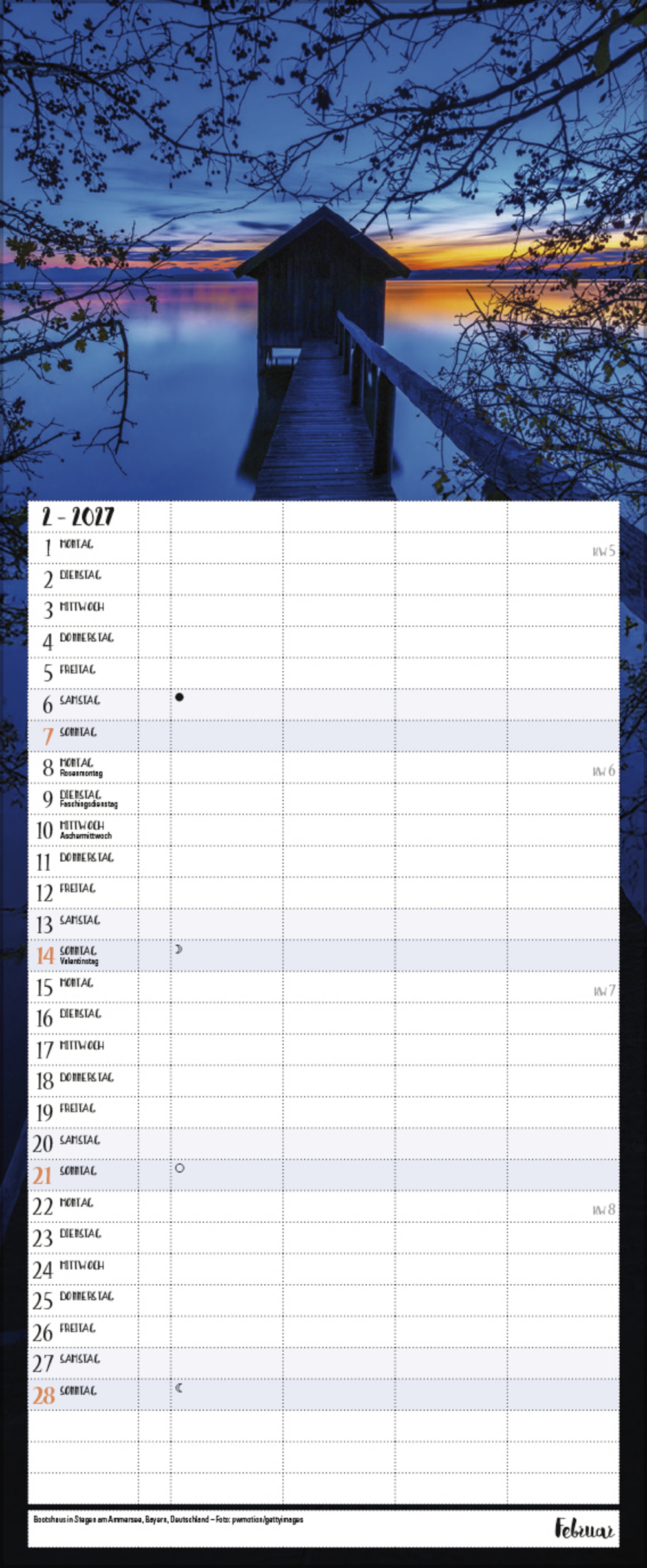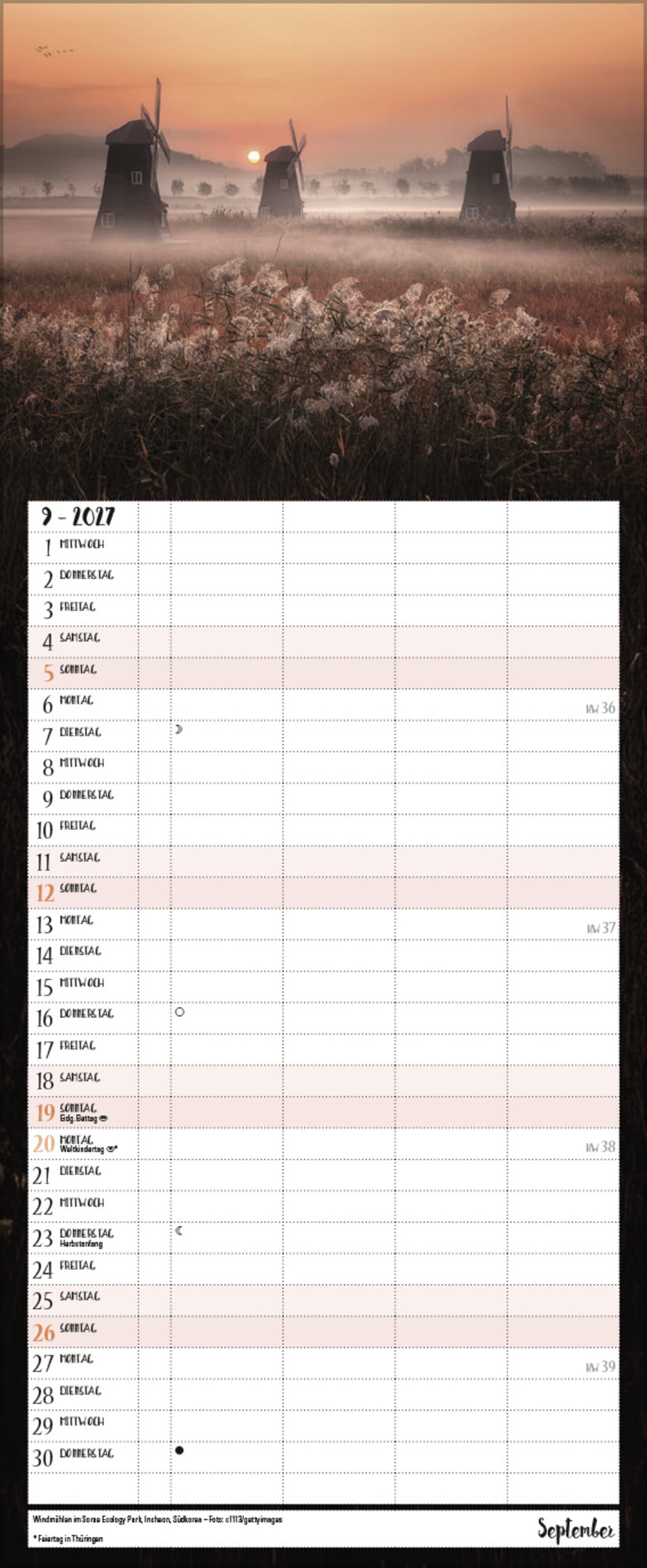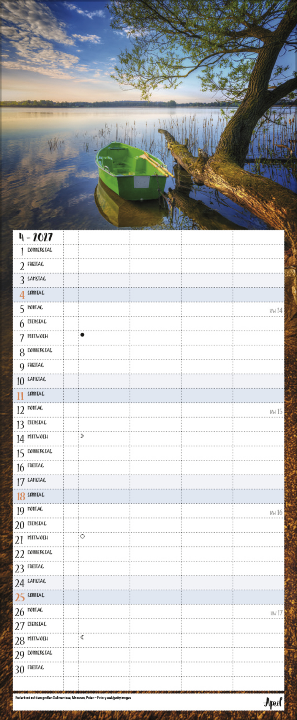 - Terminkalender mit viel Platz für Eintragungen, ohne störende Bilder in den Spalten