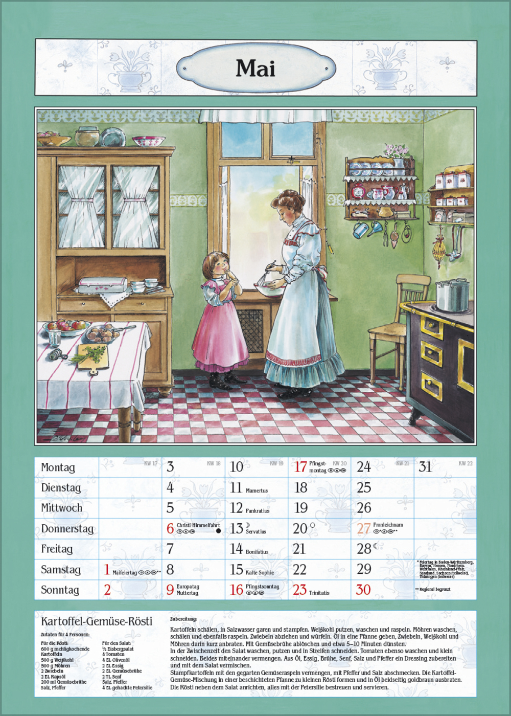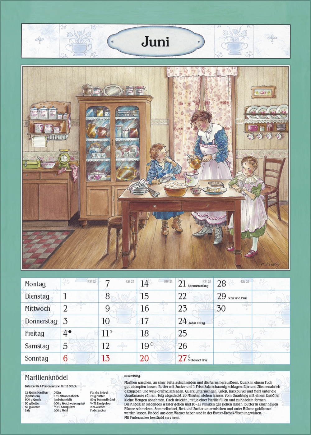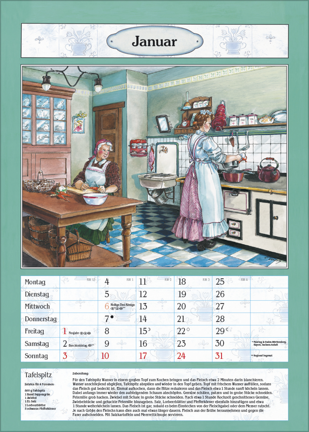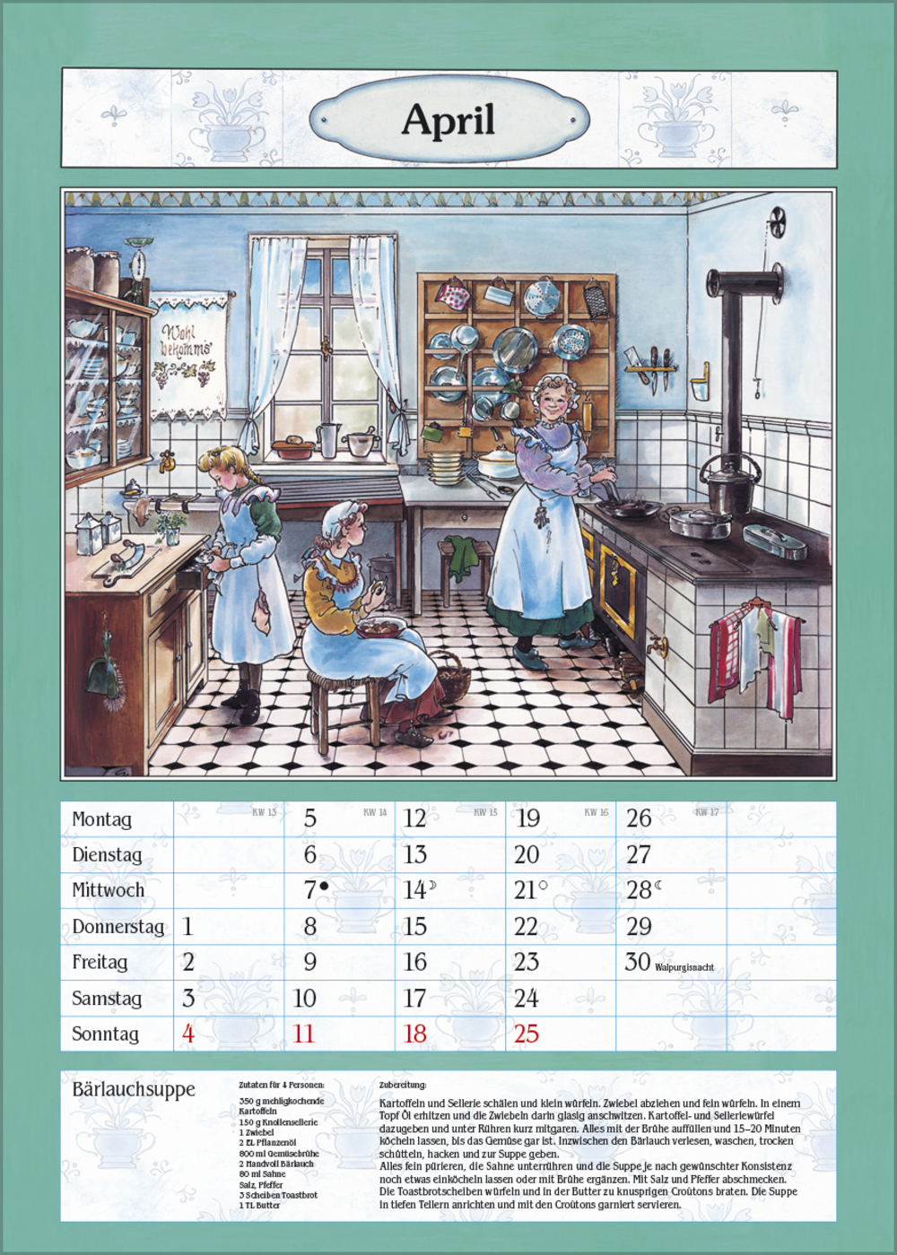 Der ideale Kalender für die gemütliche Bauernküche oder das Esszimmer. Mit nostalgischen Küchen-Bildern von Christa Versley, leckeren Gerichten aus Omas Rezeptesammlung und Platz für Eintragungen.