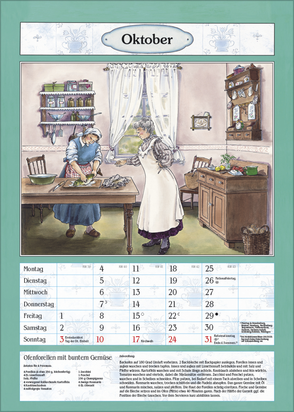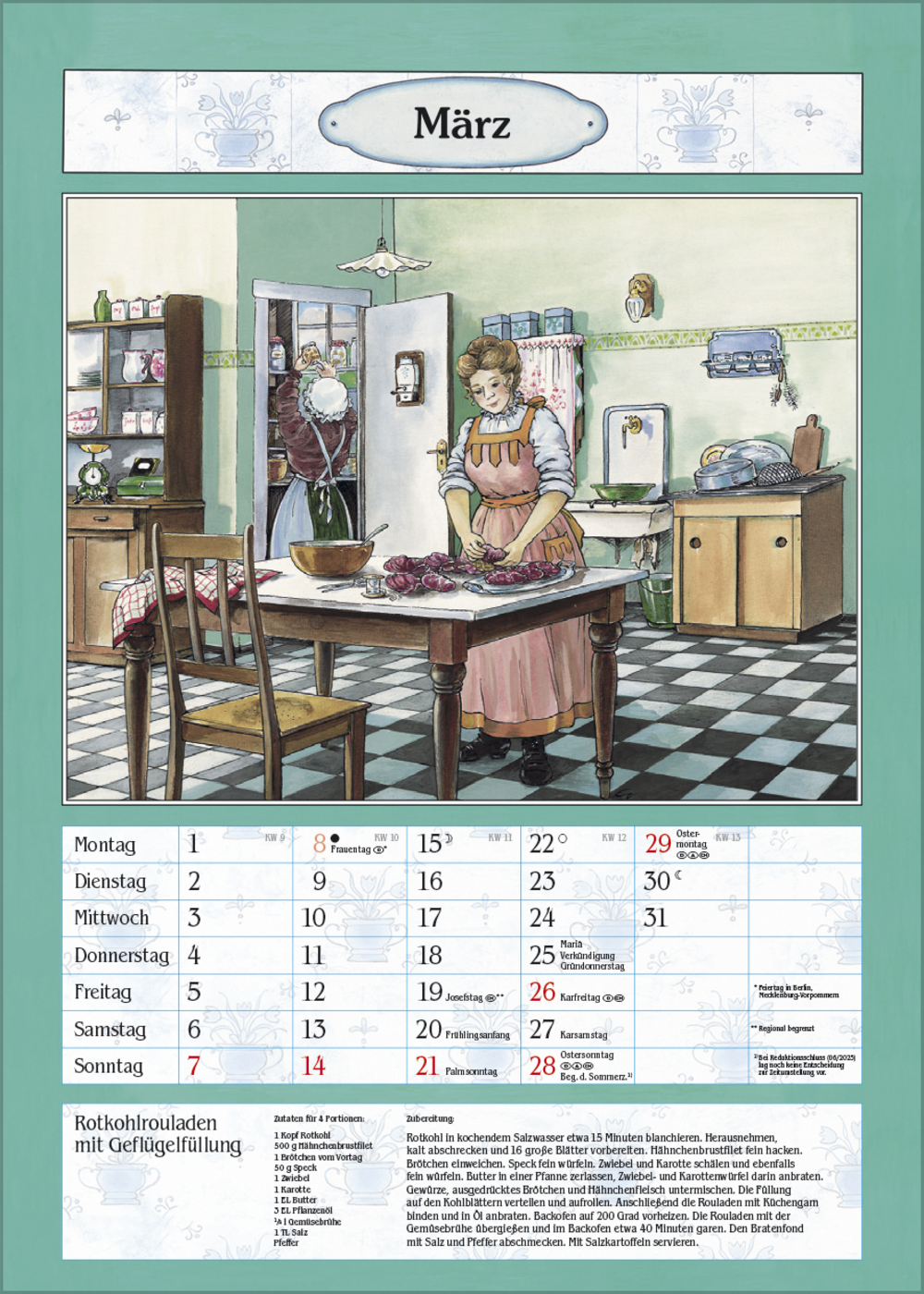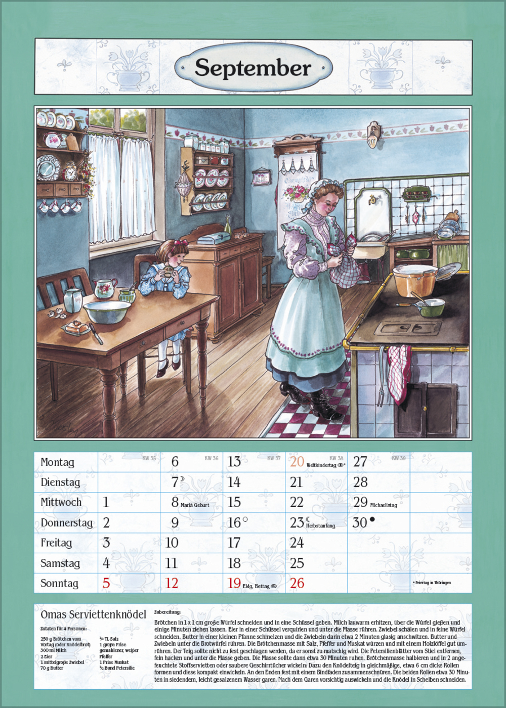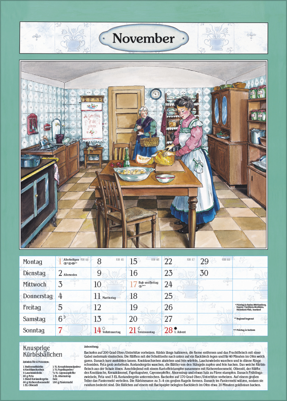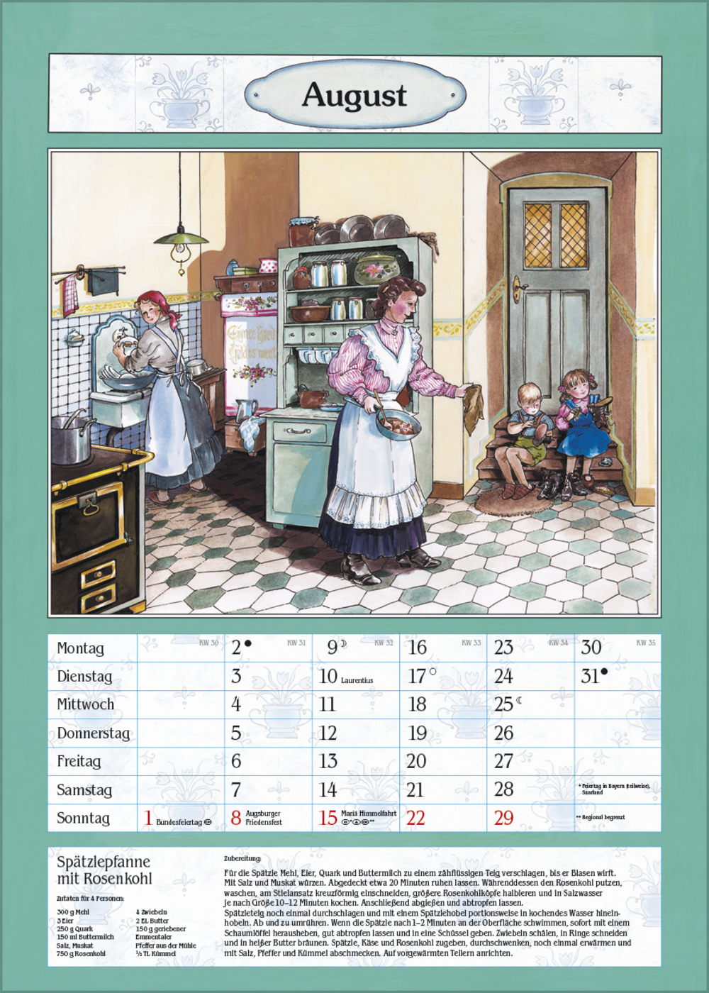 Der ideale Kalender für die gemütliche Bauernküche oder das Esszimmer. Mit nostalgischen Küchen-Bildern von Christa Versley, leckeren Gerichten aus Omas Rezeptesammlung und Platz für Eintragungen.