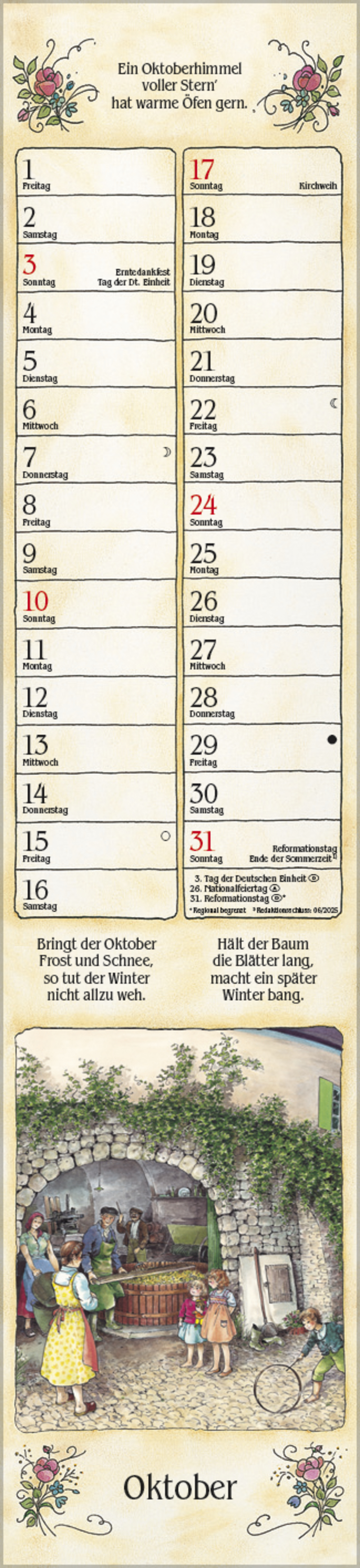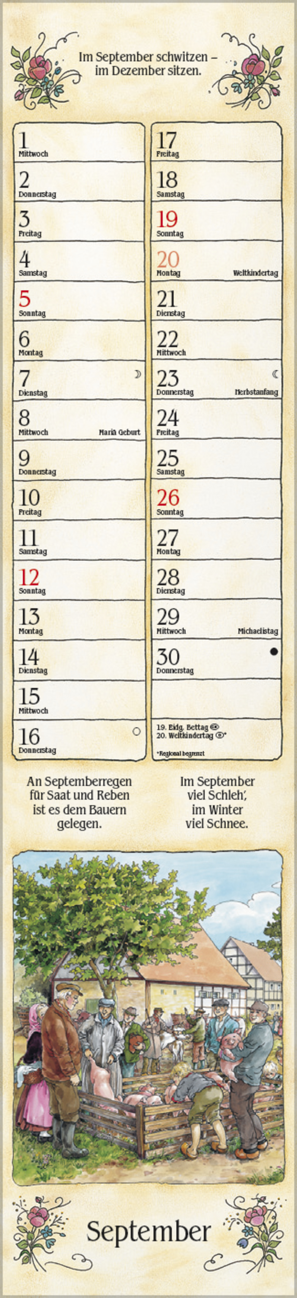 Praktischer Langplaner mit nostalgischen Bildern des ländlichen Lebens von Christa Versley und Bauernregeln.