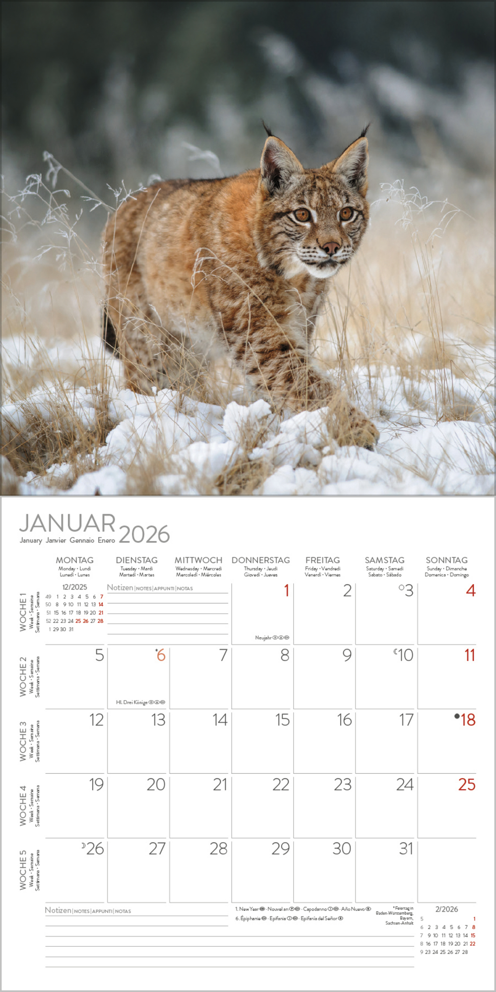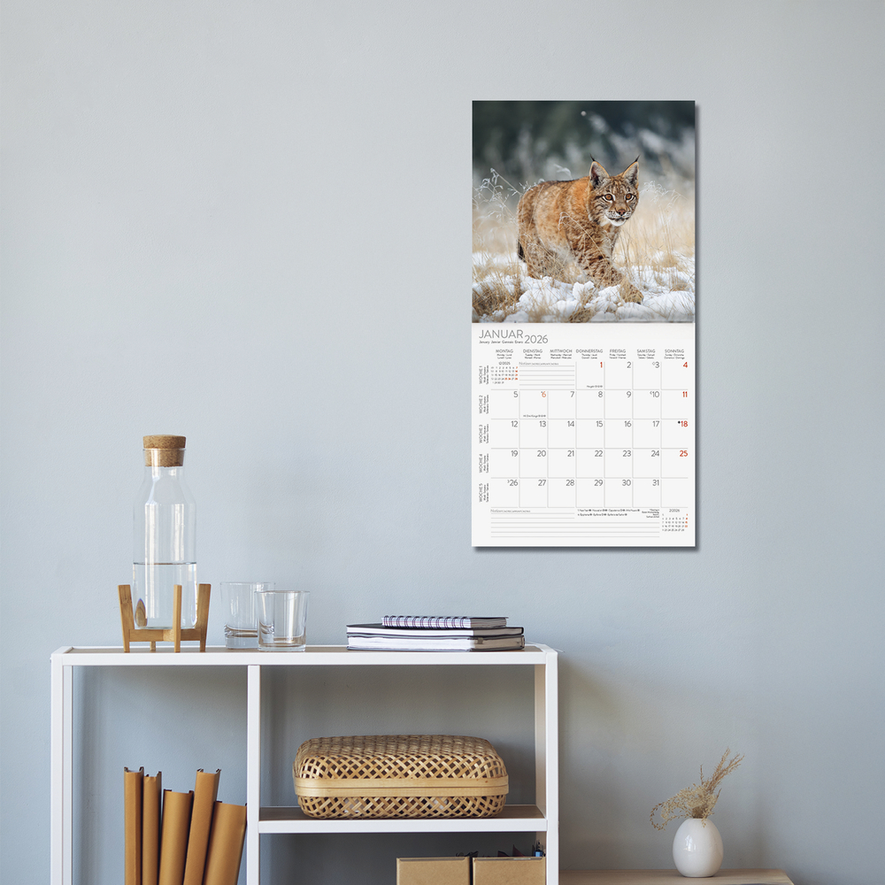 - Jede Kalenderseite mit großem Bild und viel Platz im Kalendarium für Notizen und Termine