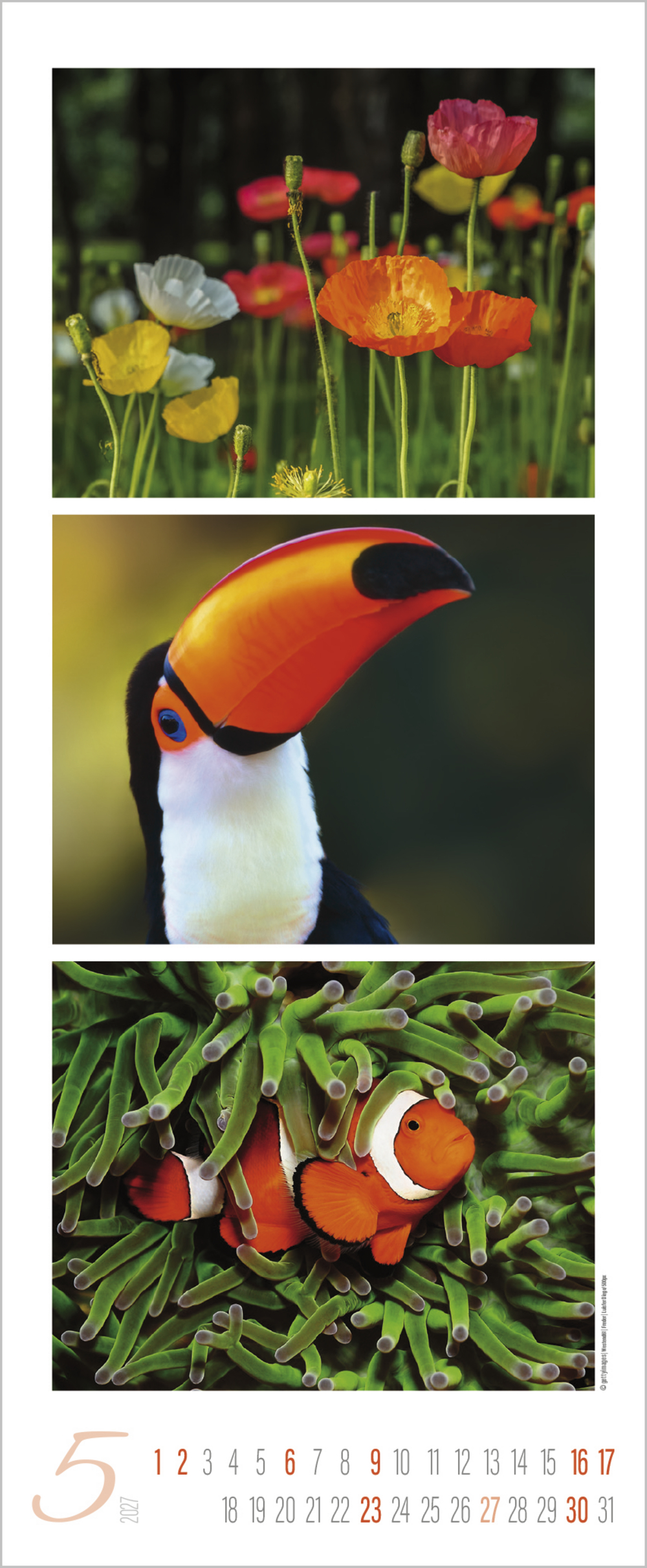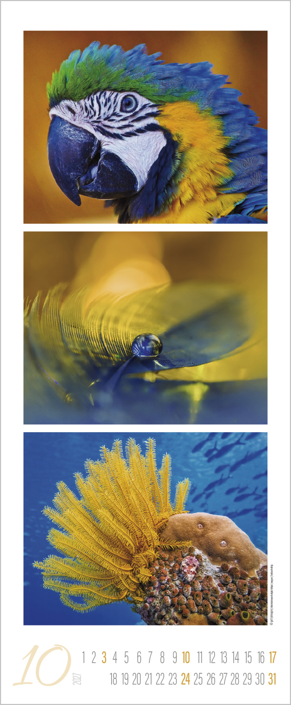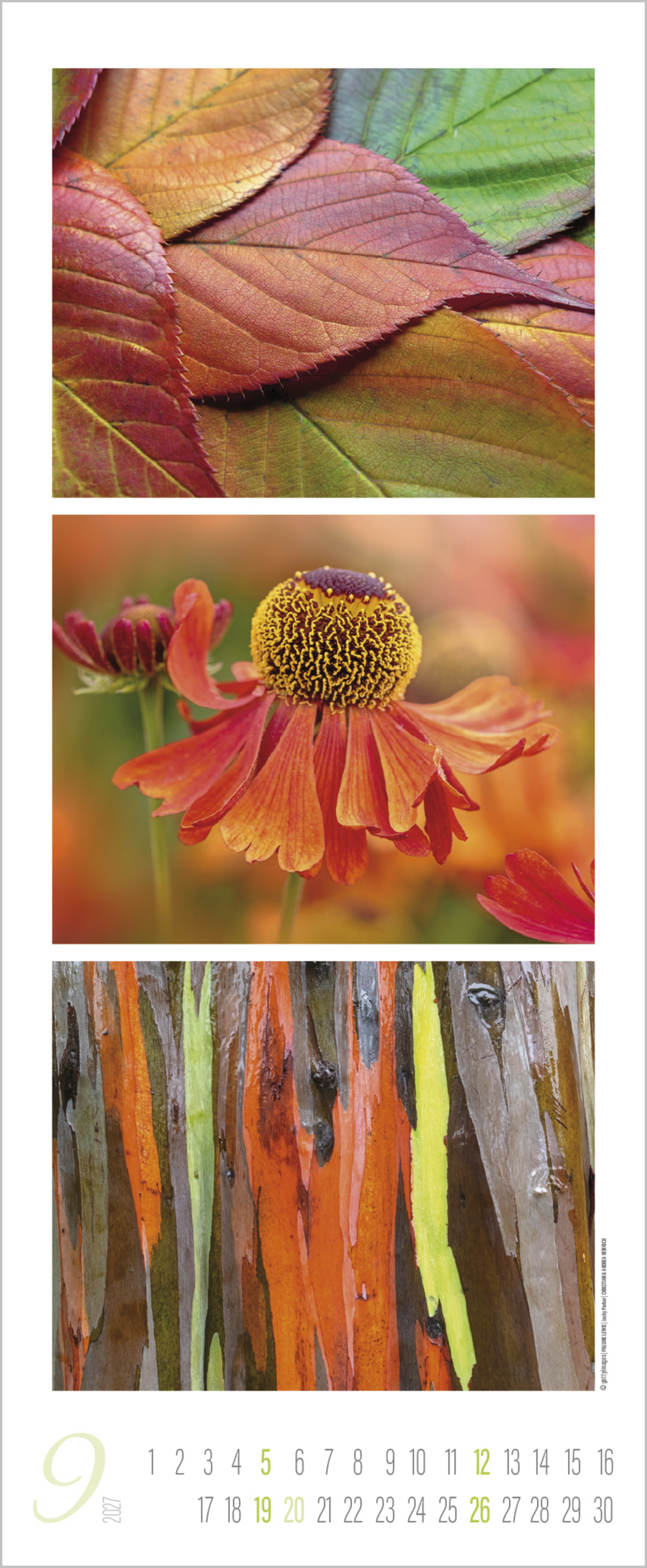 Die kunstvoll zusammengestellten Colour Triplets in diesem Kalender sind ein Wandschmuck der Superlative. Jedes Monatsblatt zeigt eine neue, perfekt abgestimmte Farbsymphonie aus Detailfotografien international bekannter Topfotografen.