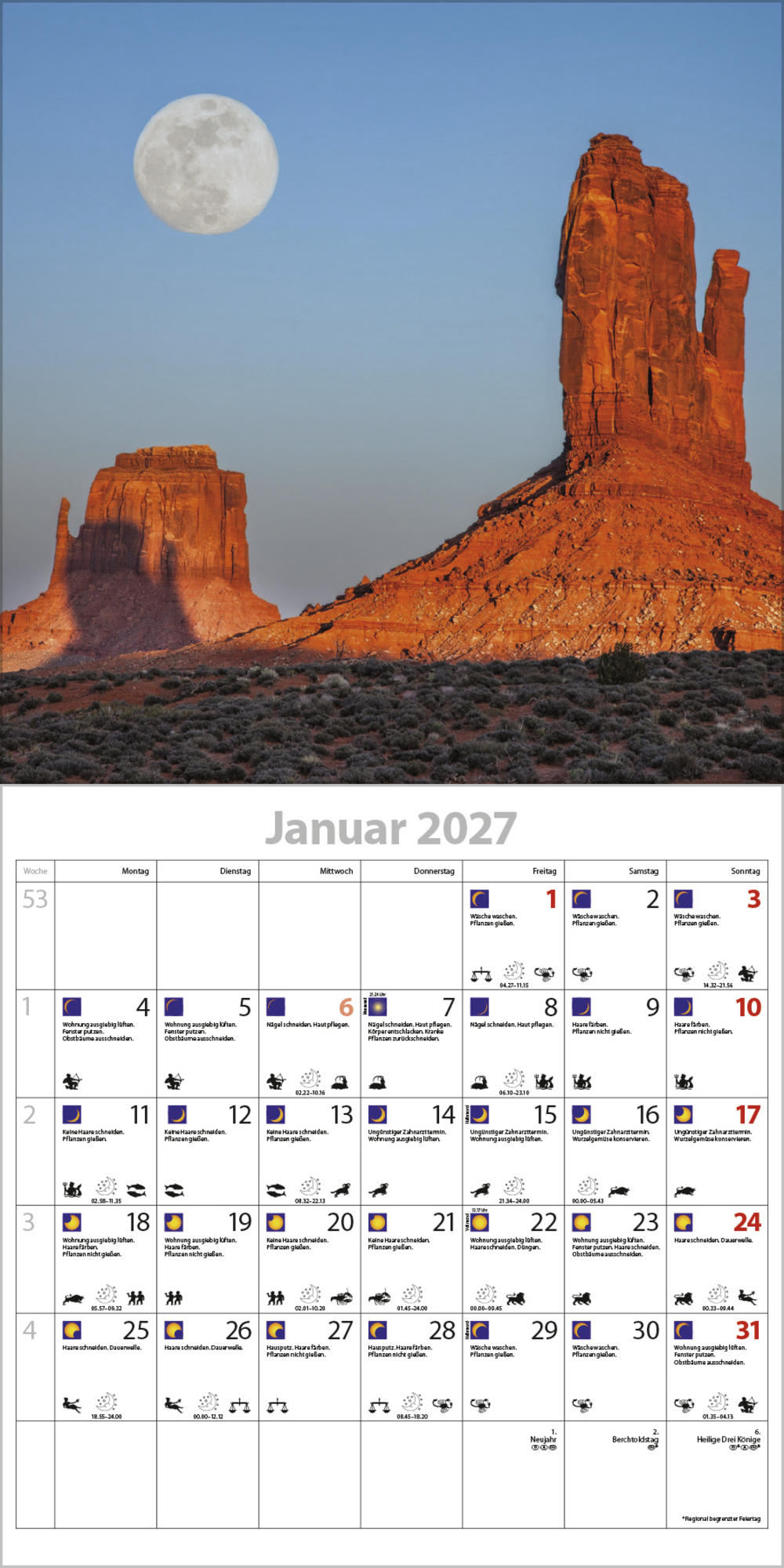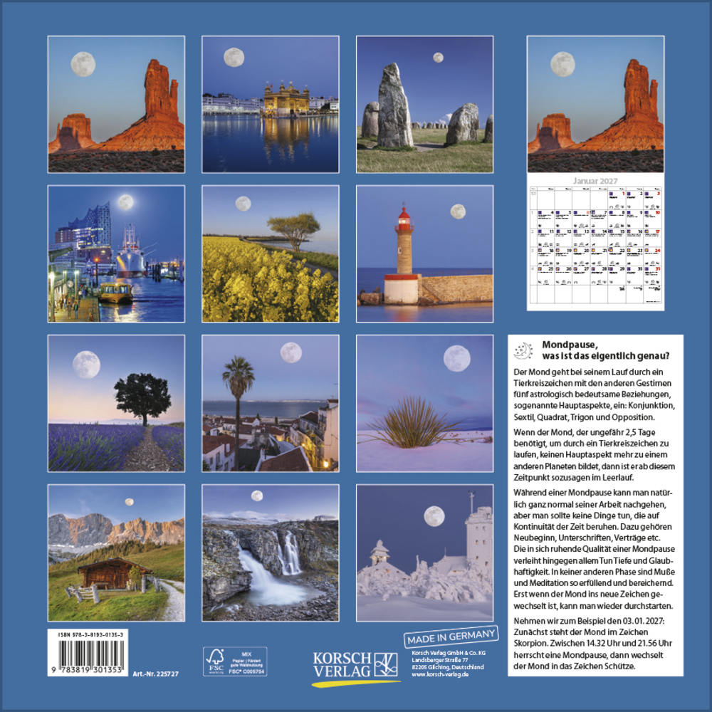 Zwölf traumhaft schöne Landschaftsfotos mit herrlichen Mondstimmungen und wertvolle Tipps rund um Haushalt, Garten und Körper ermöglichen eine harmonische Lebensplanung im Einklang mit dem Mond.