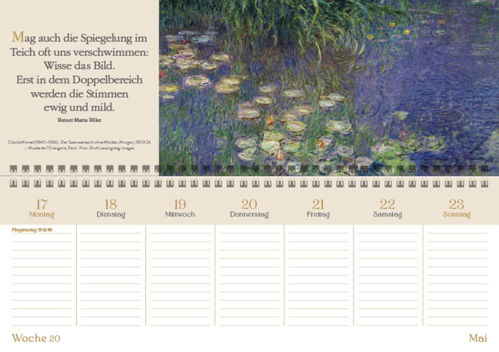 • Jede Woche auf einer Doppelseite mit Kunstwerken und Zitaten