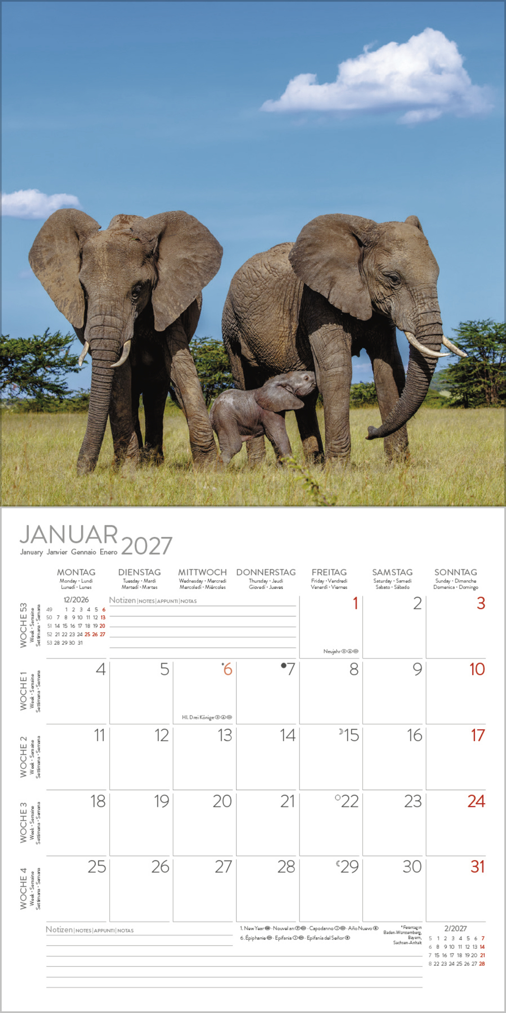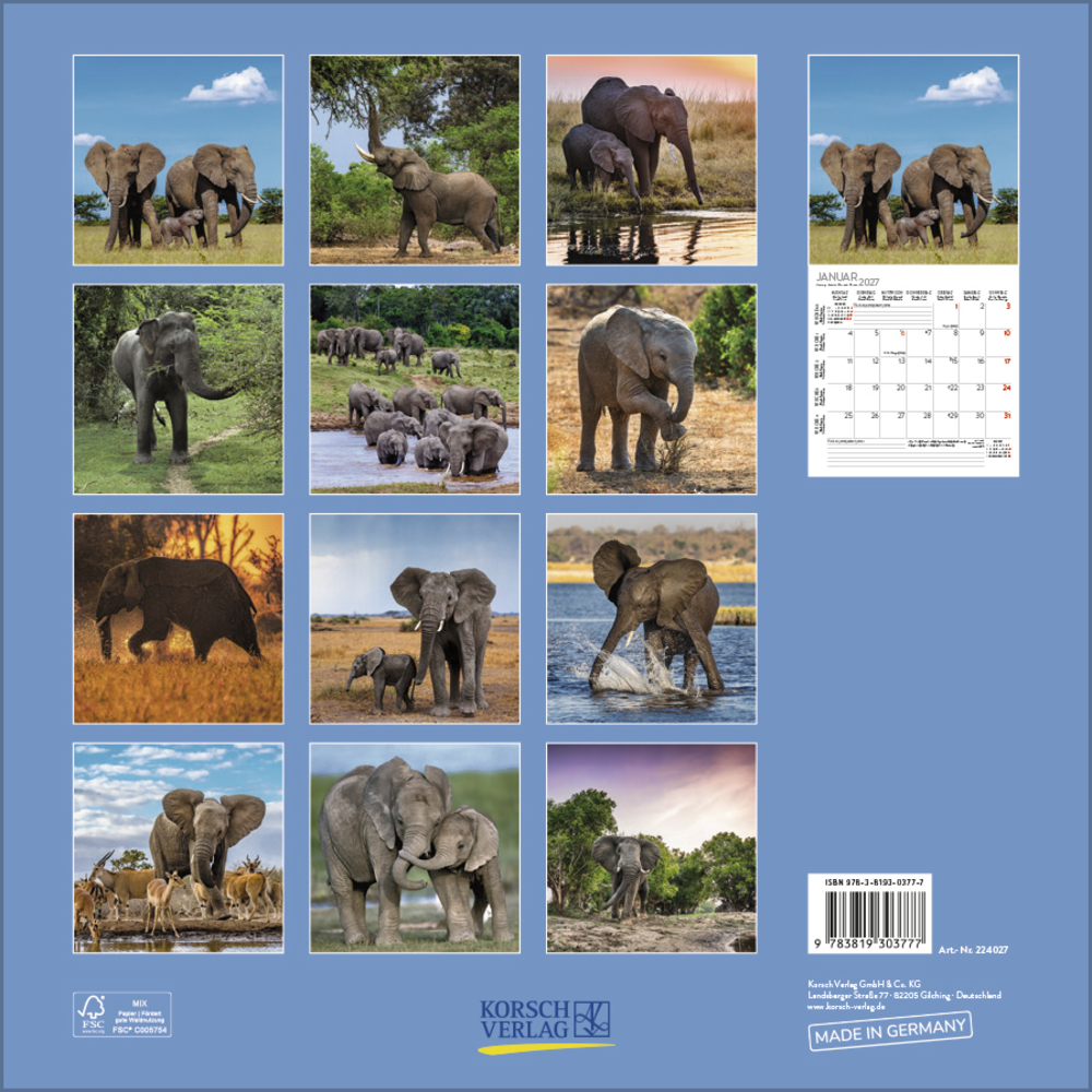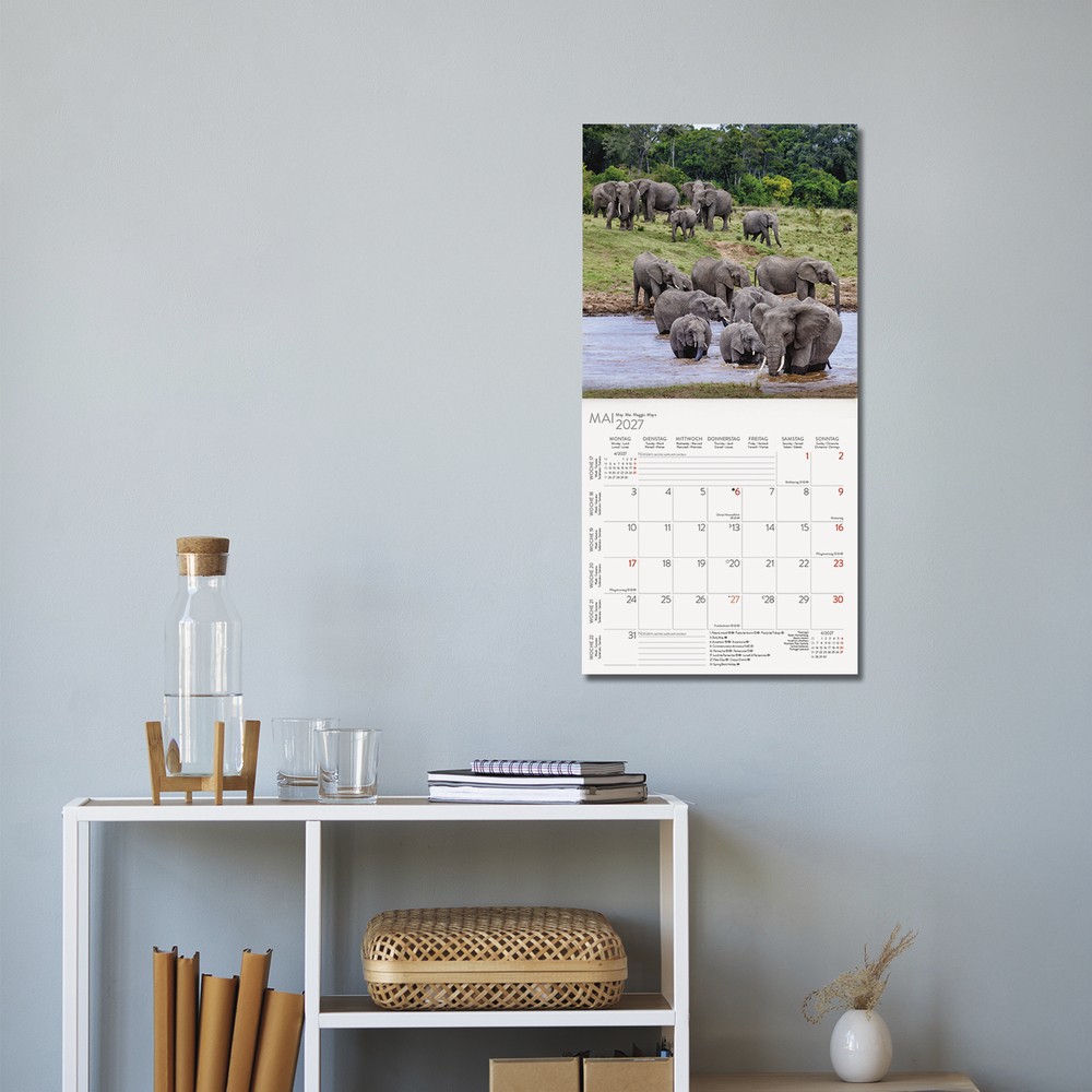 Elefanten, die intelligenten und sanften Riesen, faszinieren die Menschen auf besondere Weise. 12 beeindruckende Aufnahmen der beliebten Dickhäuter zeigt dieser praktische Kalender, der viel Platz für Eintragungen bietet.