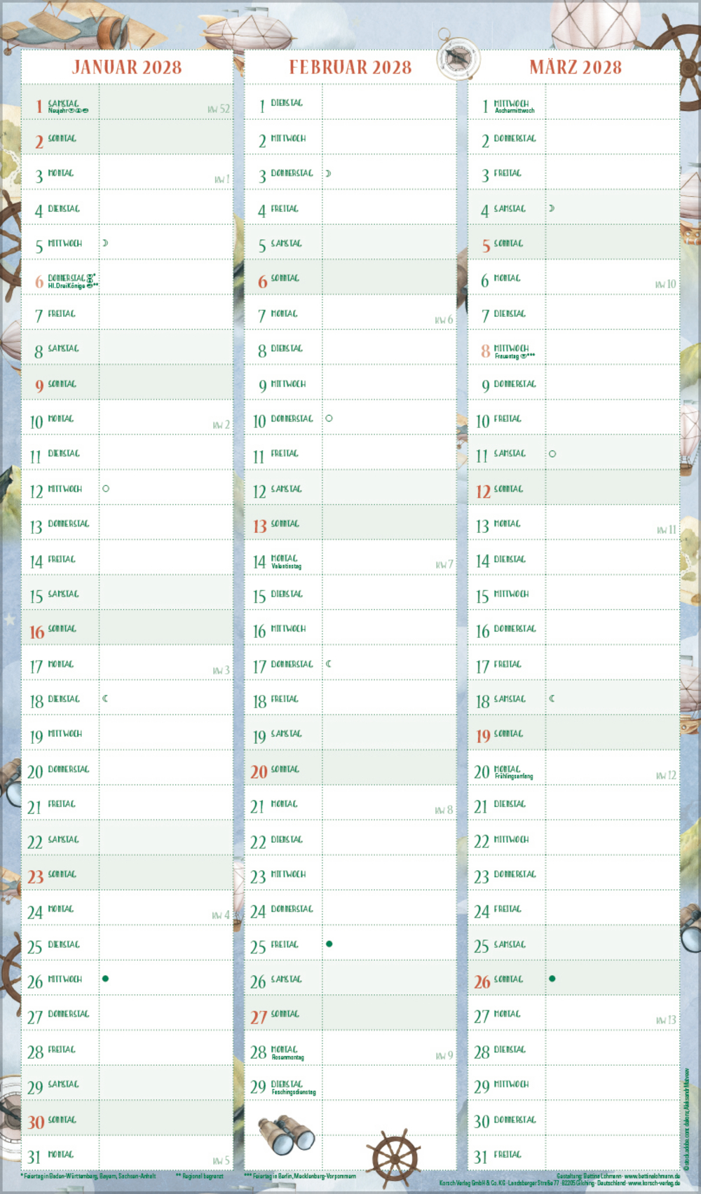 - Terminkalender mit viel Platz für Eintragungen, ohne störende Bilder in den Spalten