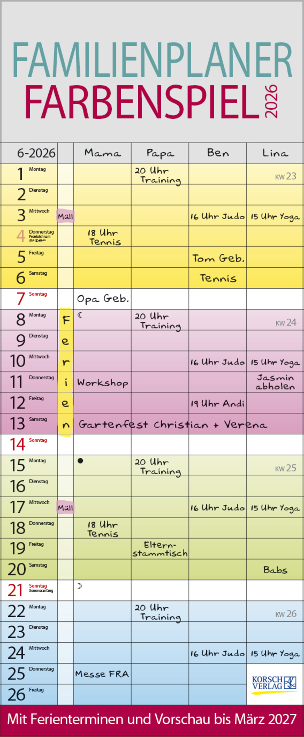 • Praktische Zusatzspalte für Ferien, Müll und weitere Aktivitäten