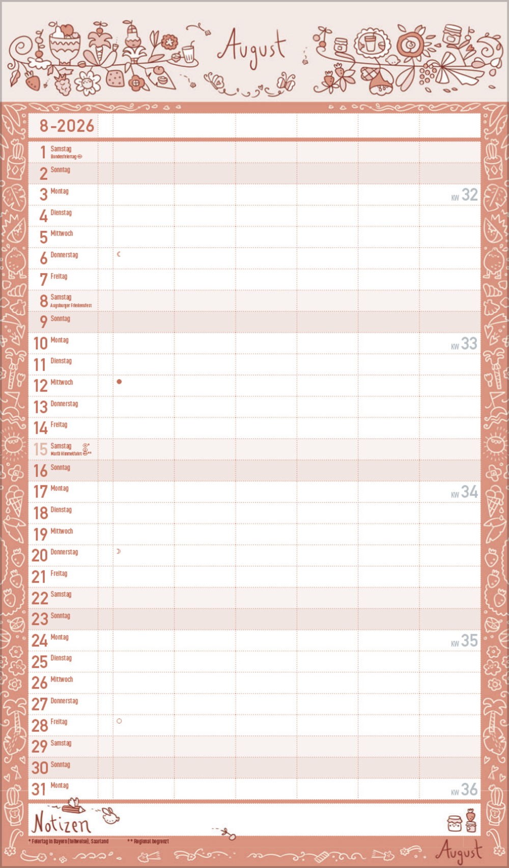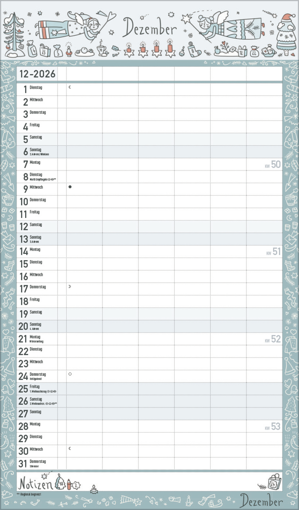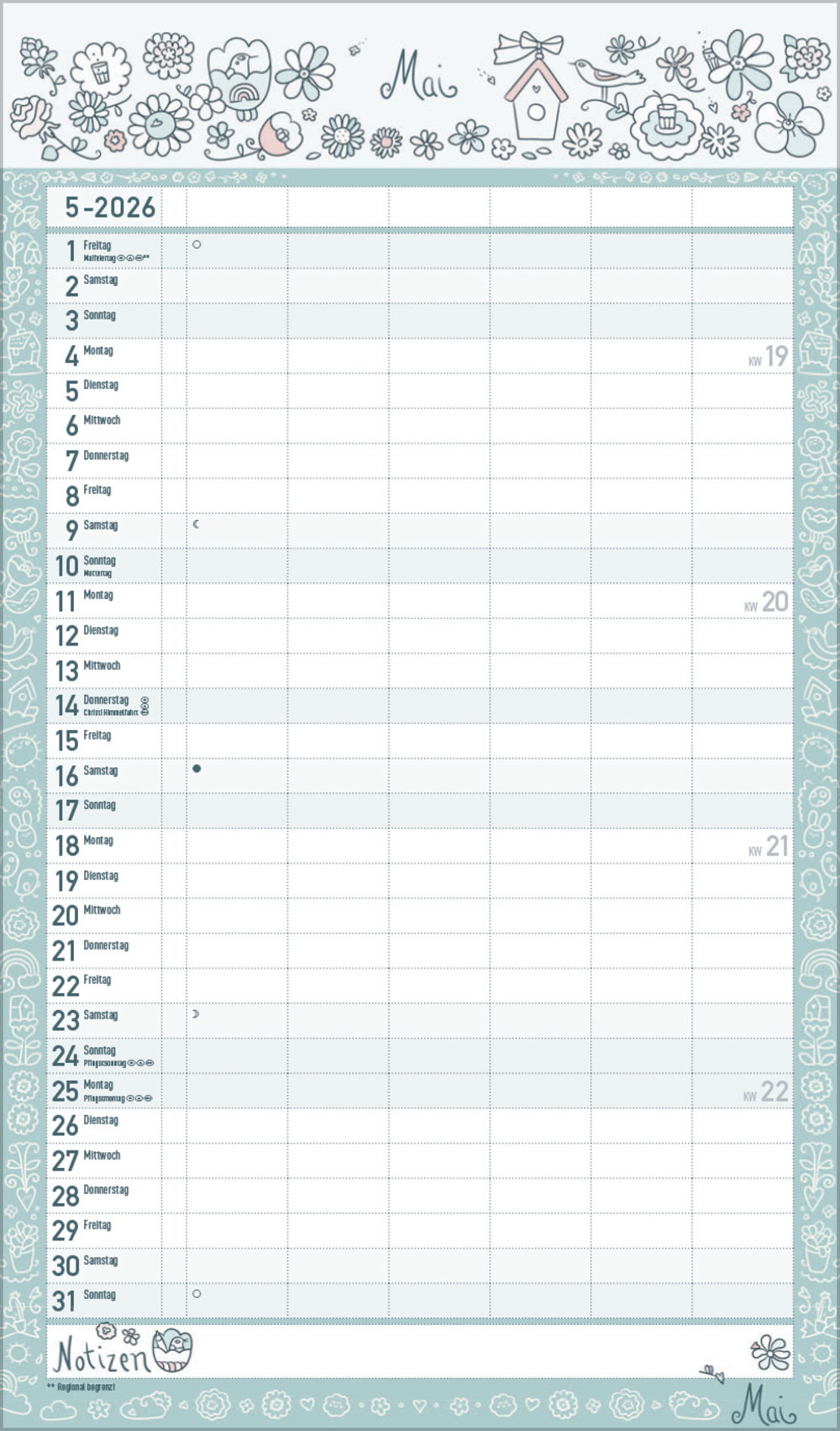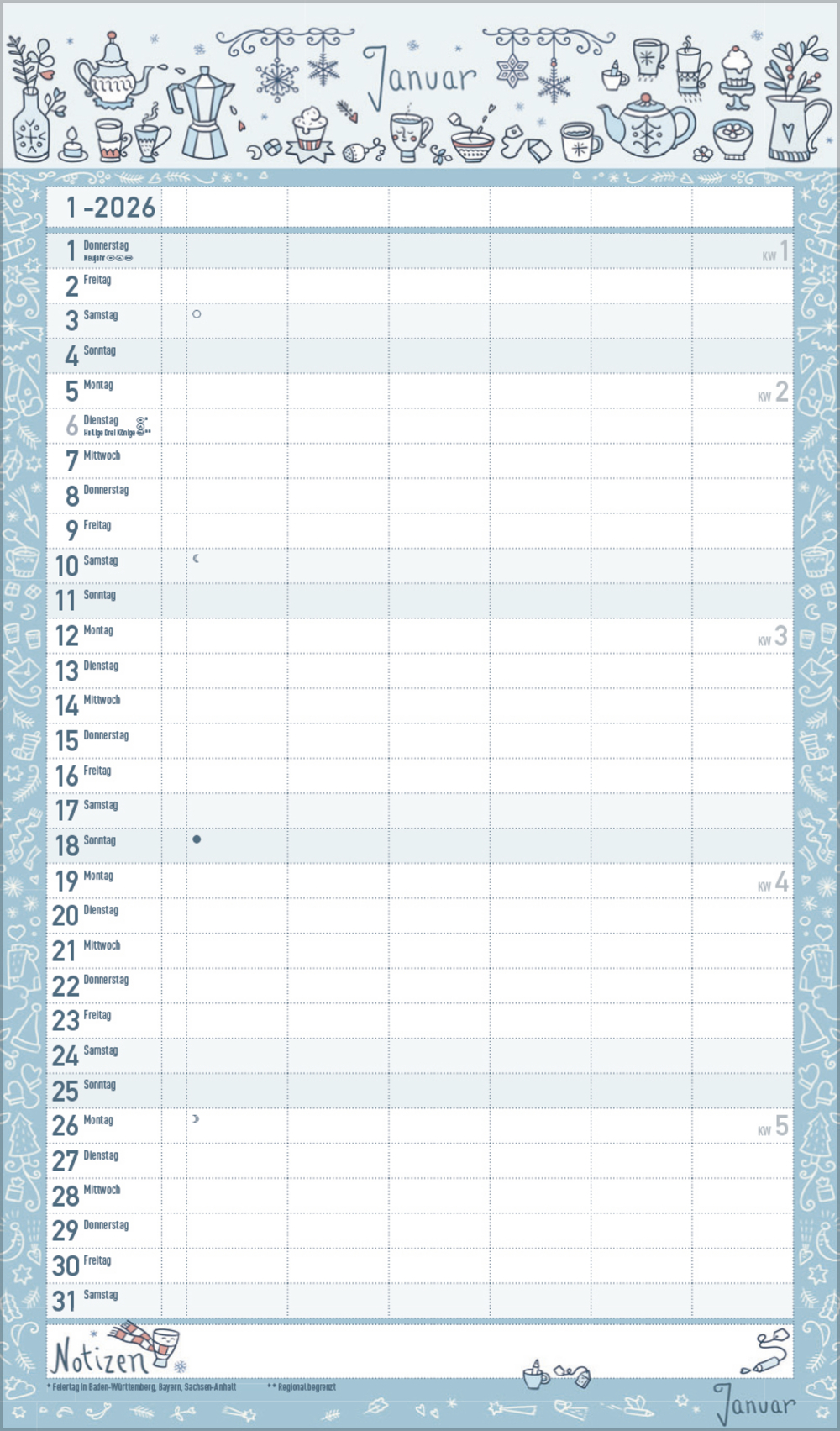 - Praktische Zusatzspalte für Ferien, Müll und weitere Aktivitäten