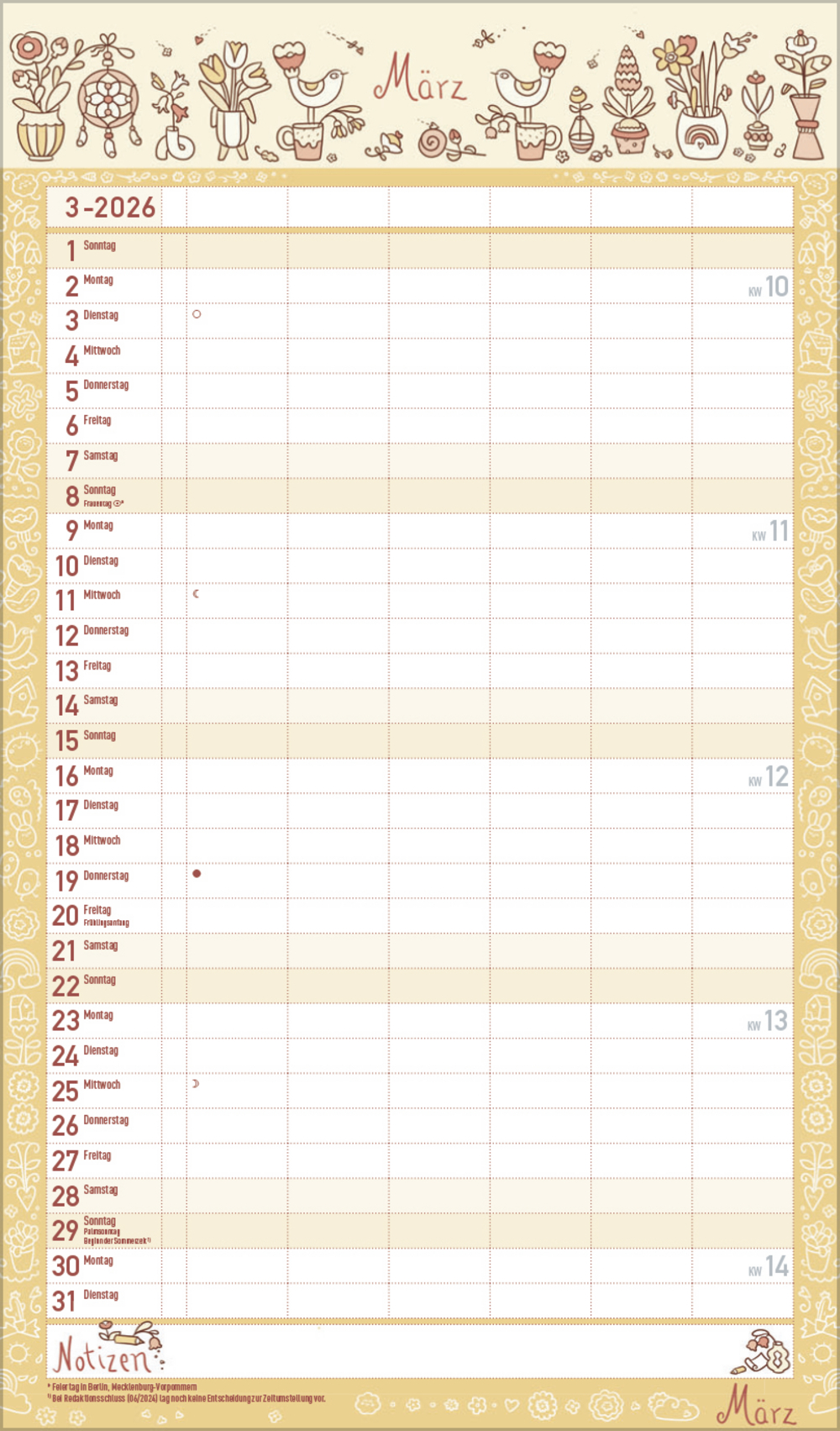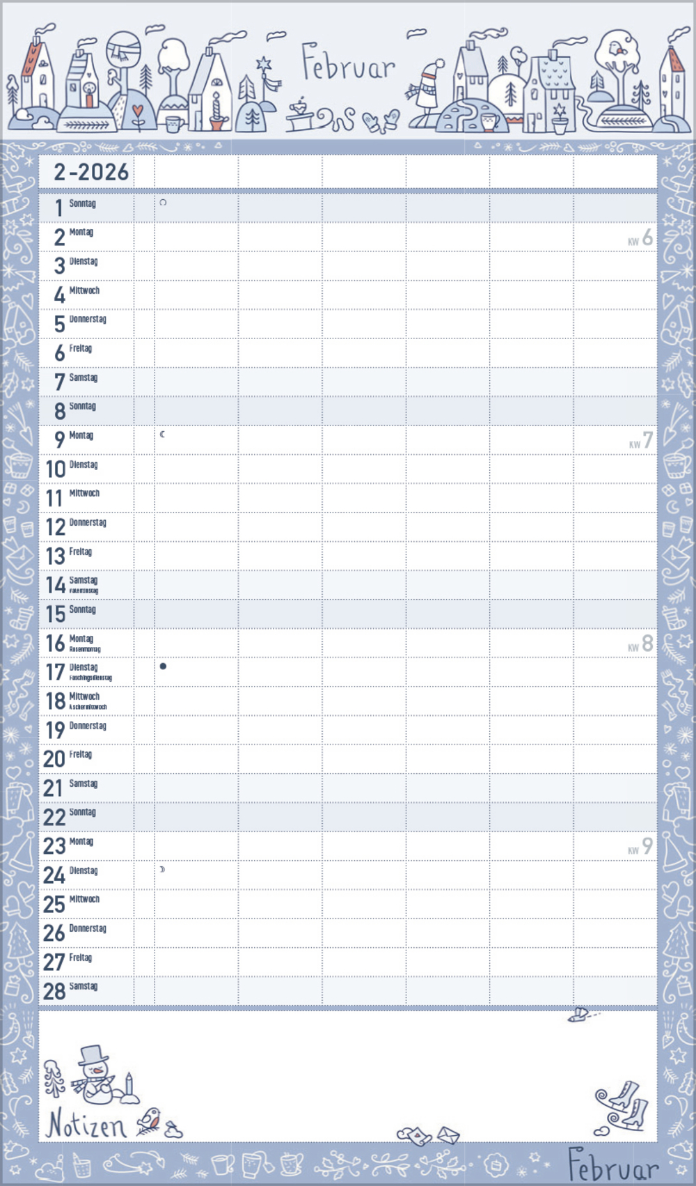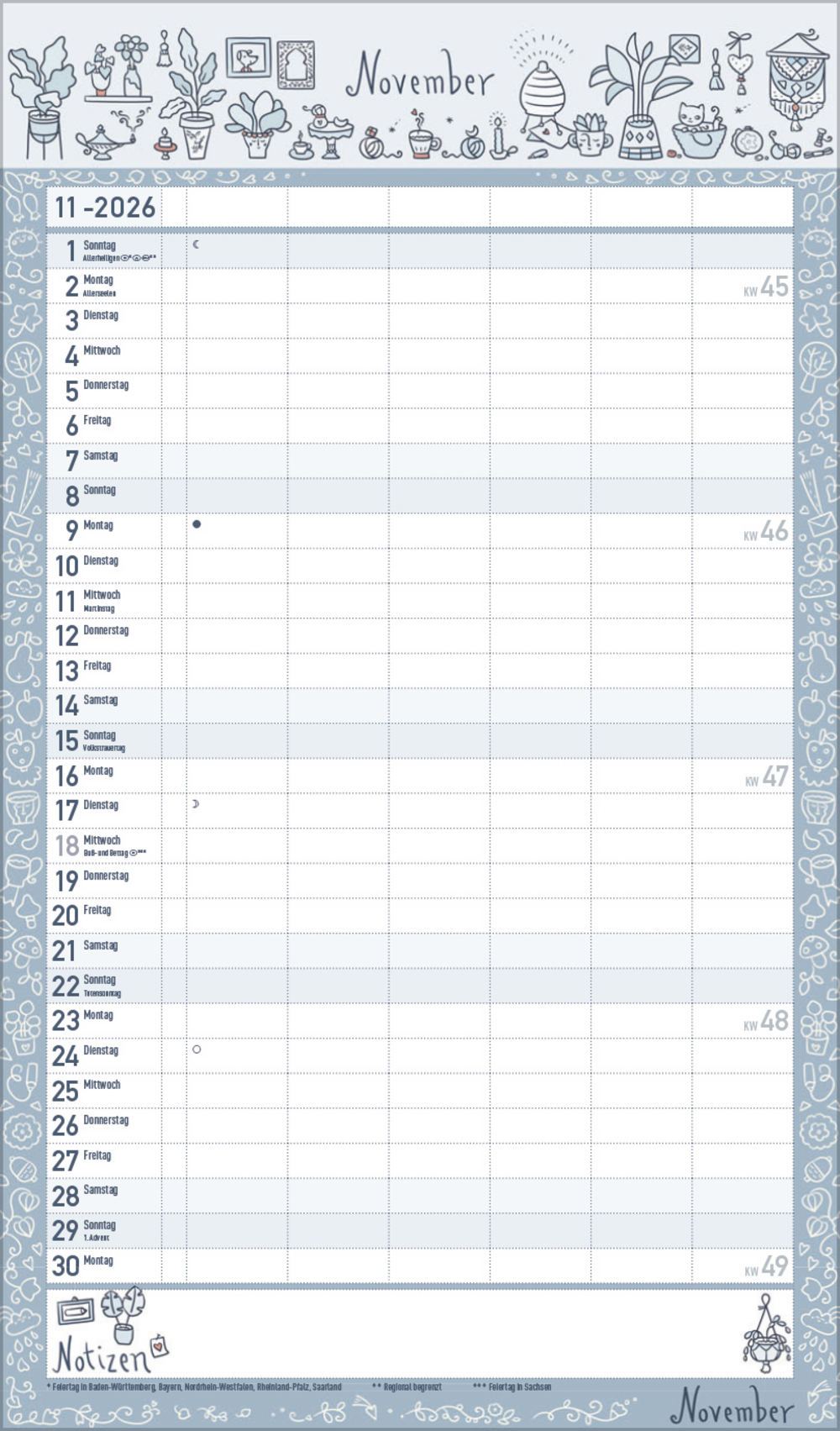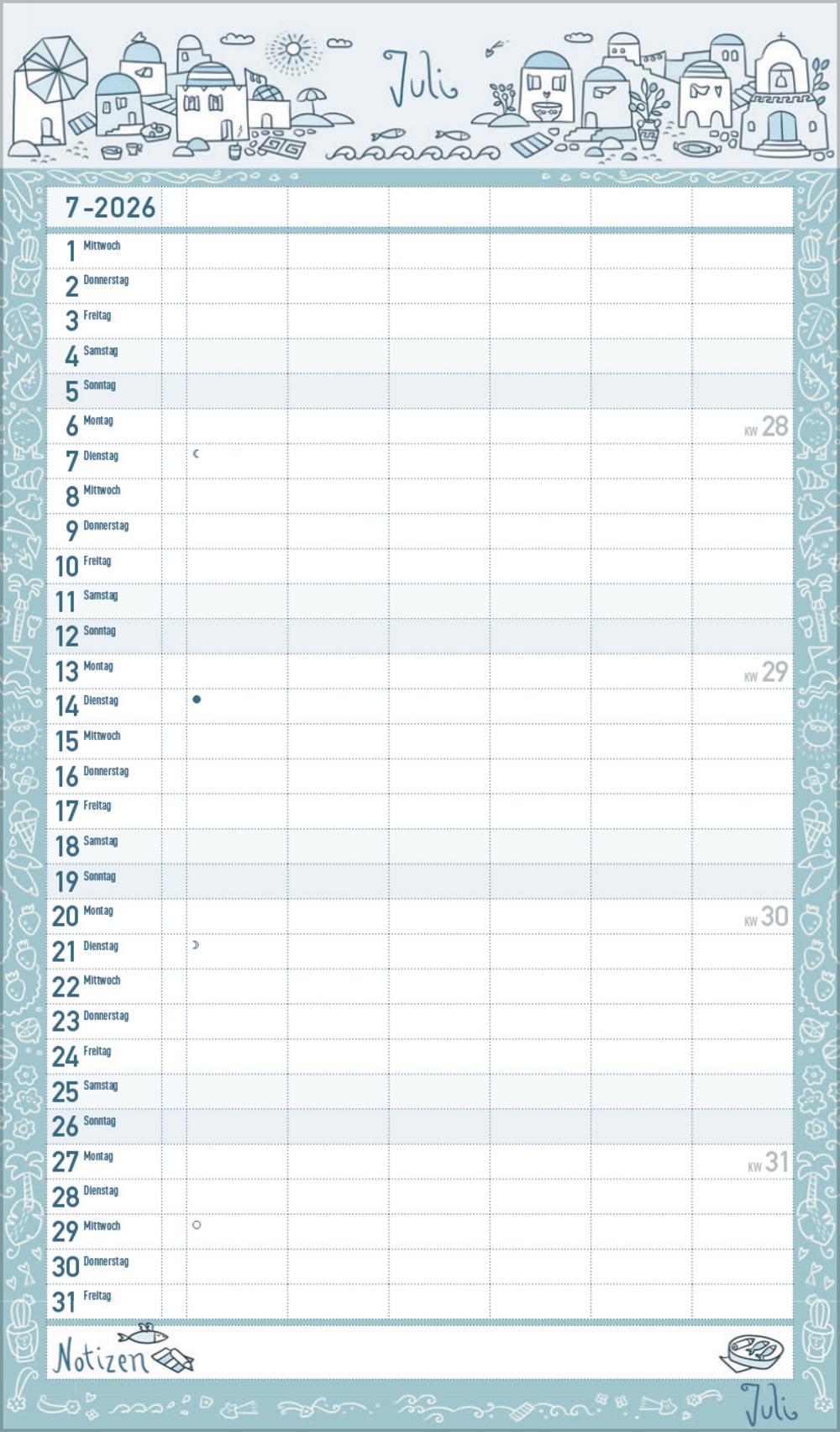 - Praktische Zusatzspalte für Ferien, Müll und weitere Aktivitäten