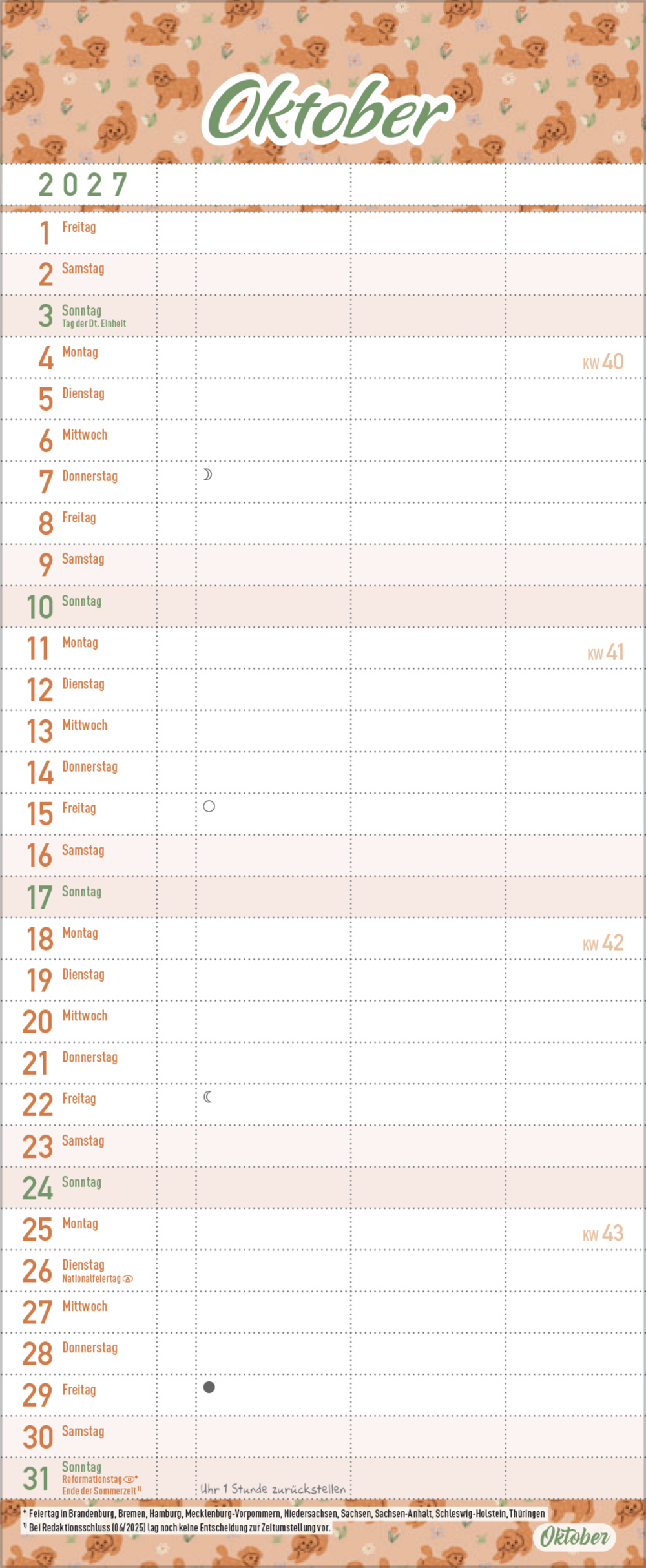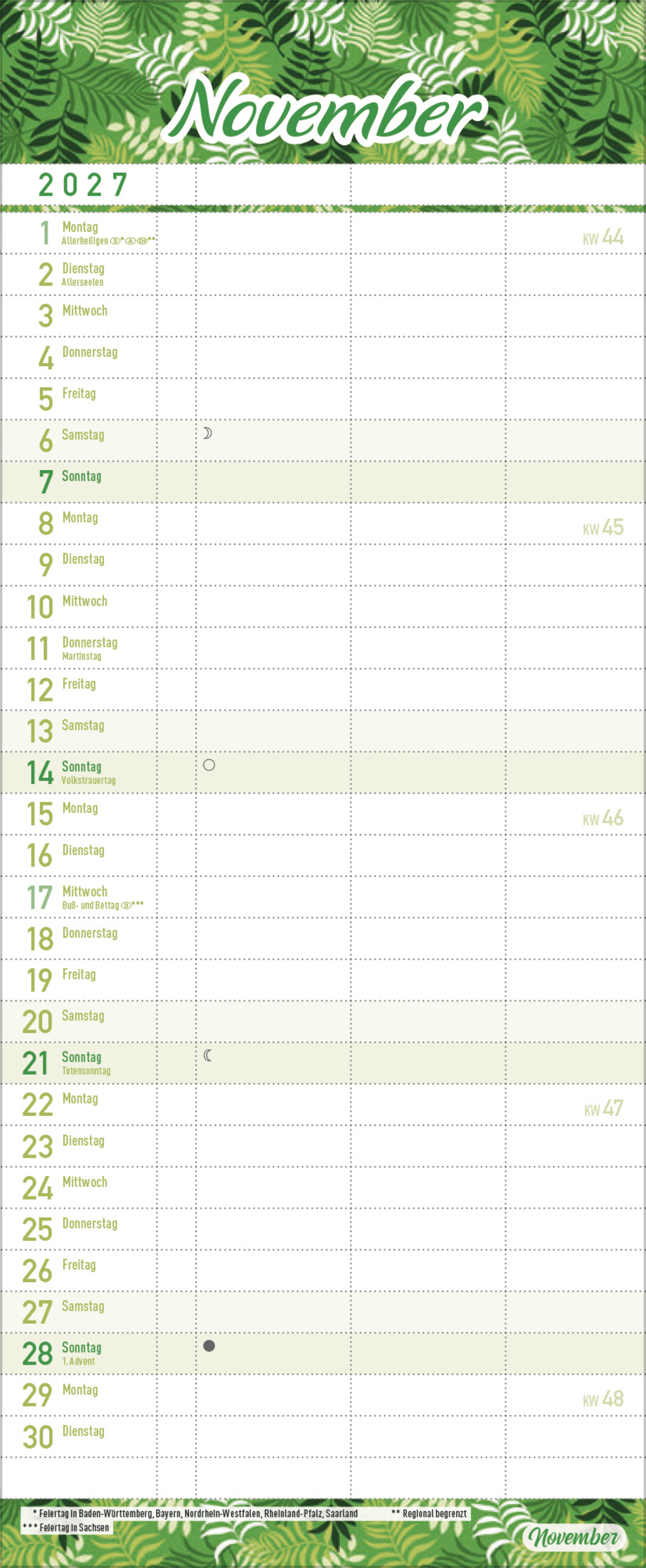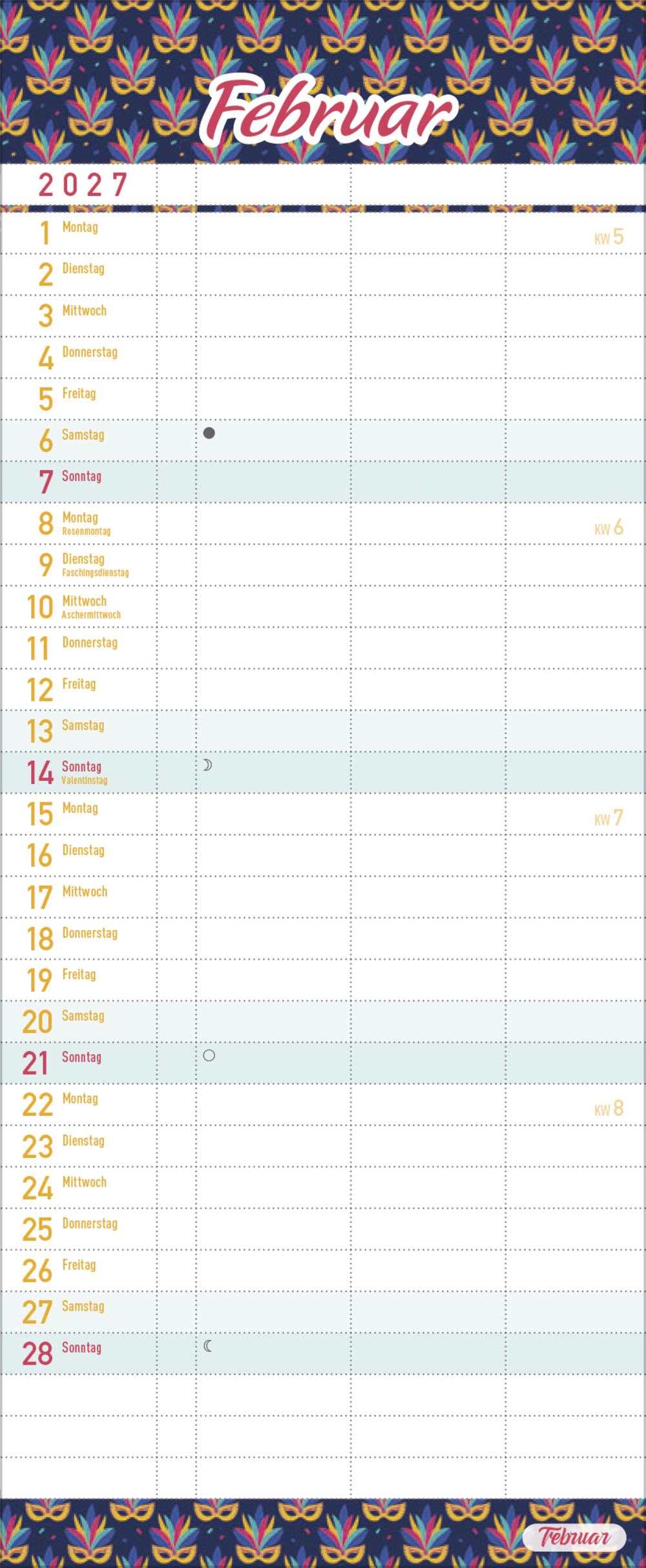 - Praktische Zusatzspalte für Ferien, Müll und weitere Aktivitäten