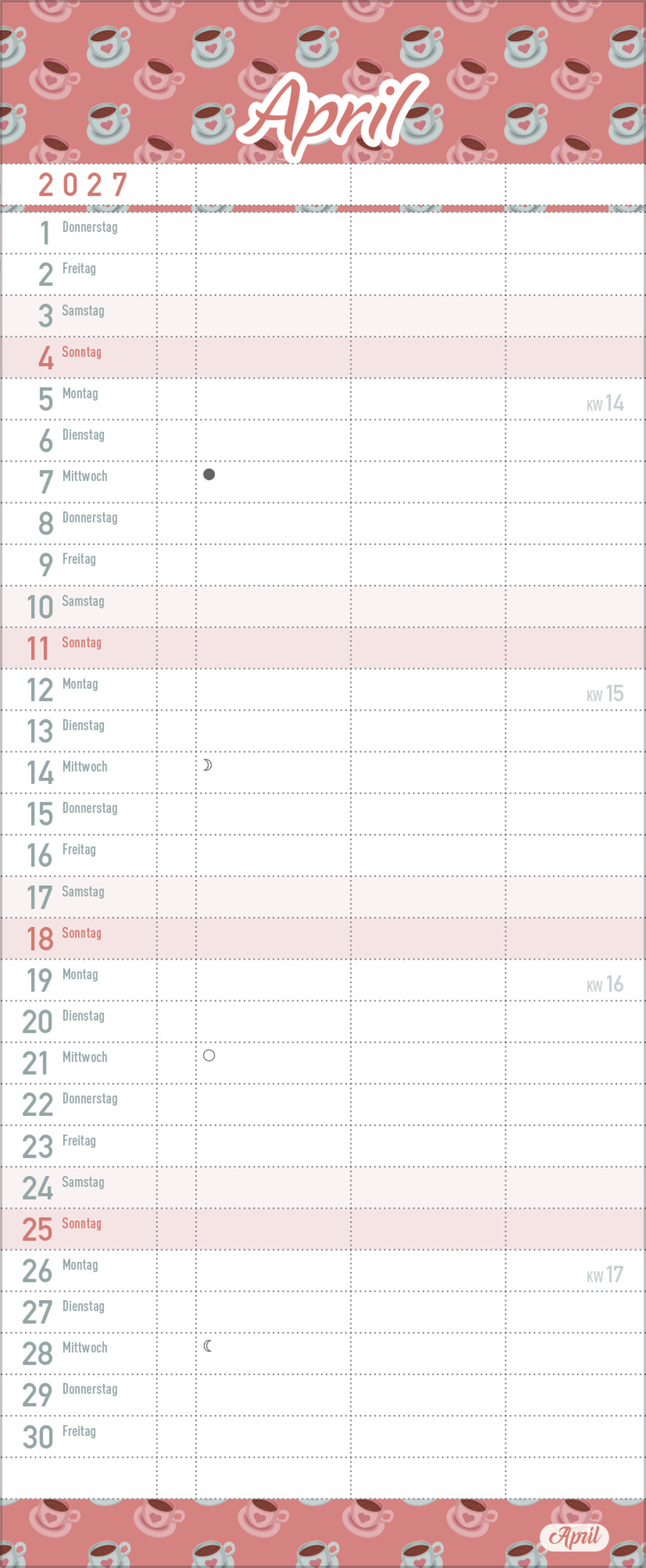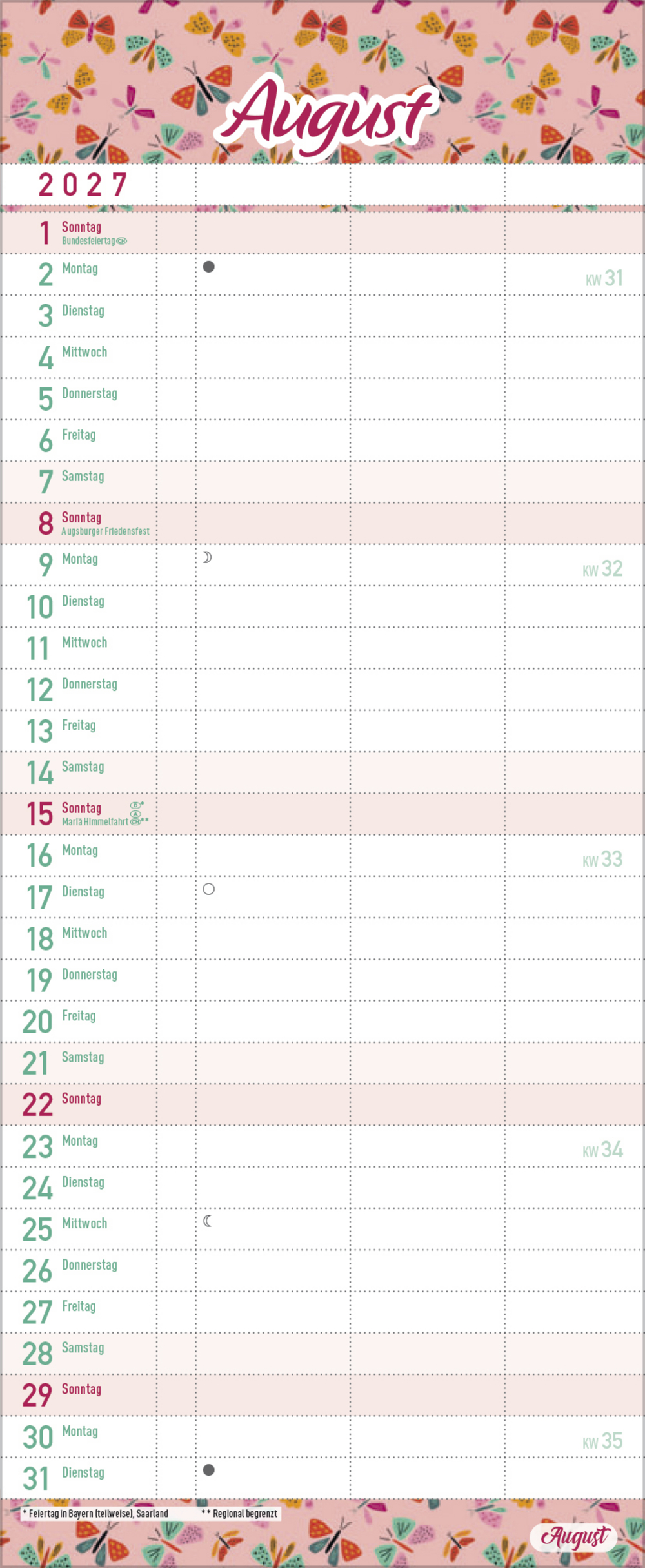 - Terminkalender mit viel Platz für Eintragungen, ohne störende Bilder in den Spalten