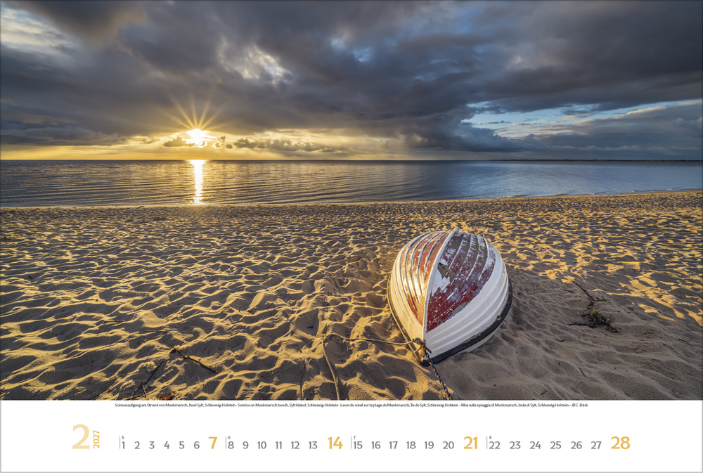 Stimmungsvolle Momente, malerische Plätze, weite Strände und spektakuläre Aussichten auf das Meer an der deutschen Nordseeküste hält dieser Kalender in 12 attraktiven Panorama-Fotografien fest. Ein Muss für alle, die die Nordsee lieben!