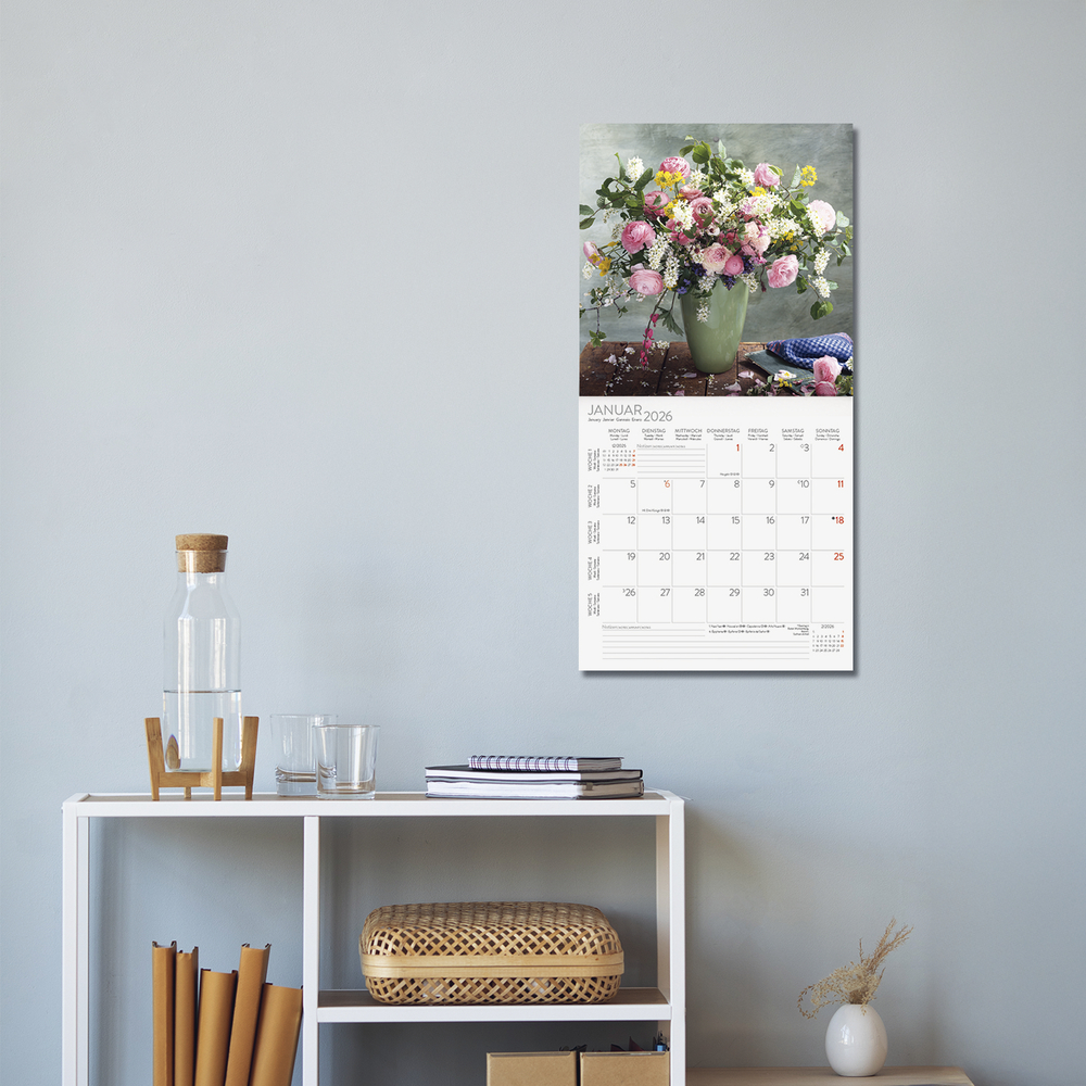 - Jede Kalenderseite mit großem Bild und viel Platz im Kalendarium für Notizen und Termine