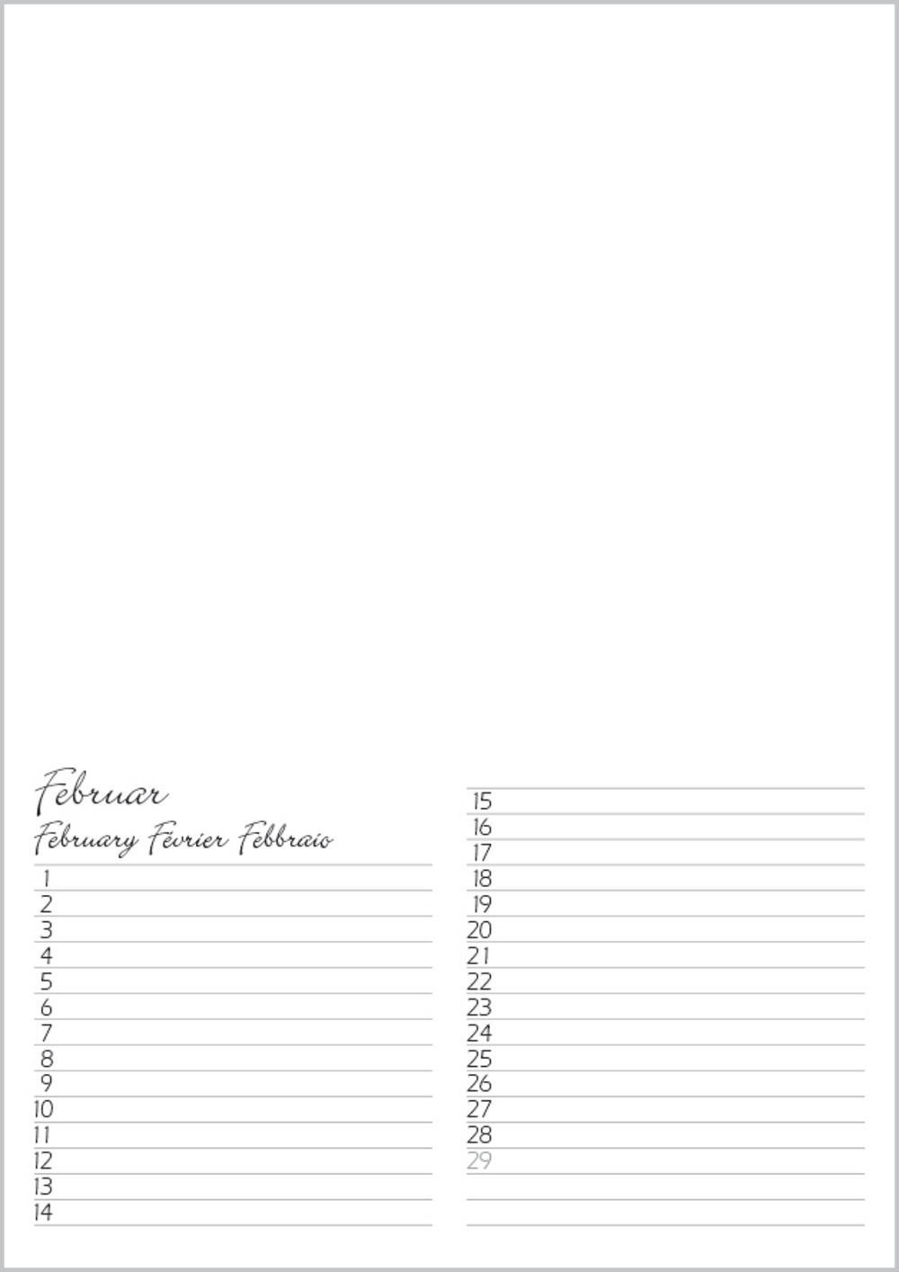 • Mehrsprachiges Kalendarium mit Feiertagen für Deutschland, Österreich und Schweiz