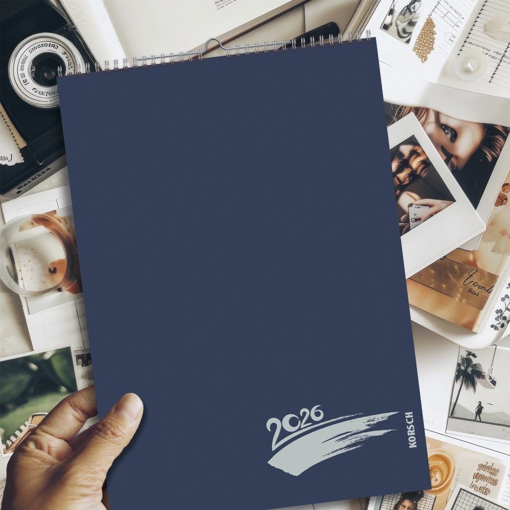 Hochwertiger Kalender mit dunkelblauem Karton zum Selbstgestalten mit Fotos, Zeichnungen oder Collagen