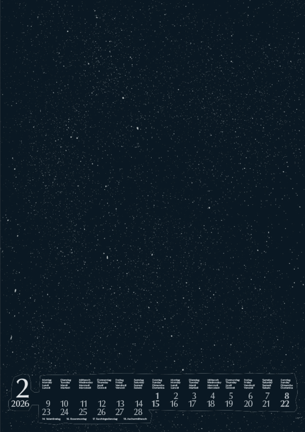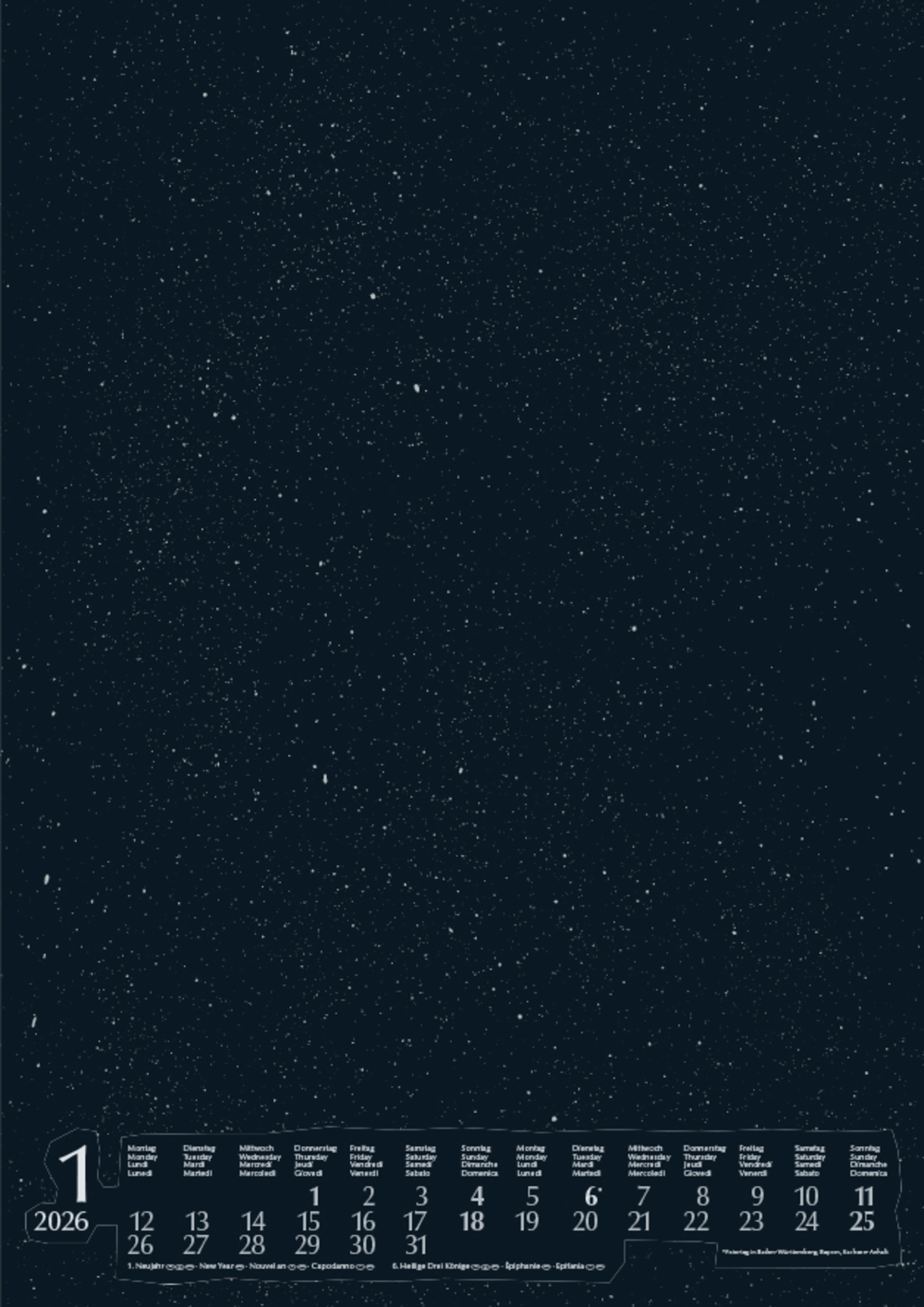 • Mehrsprachiges Kalendarium mit Feiertagen für Deutschland, Österreich und Schweiz