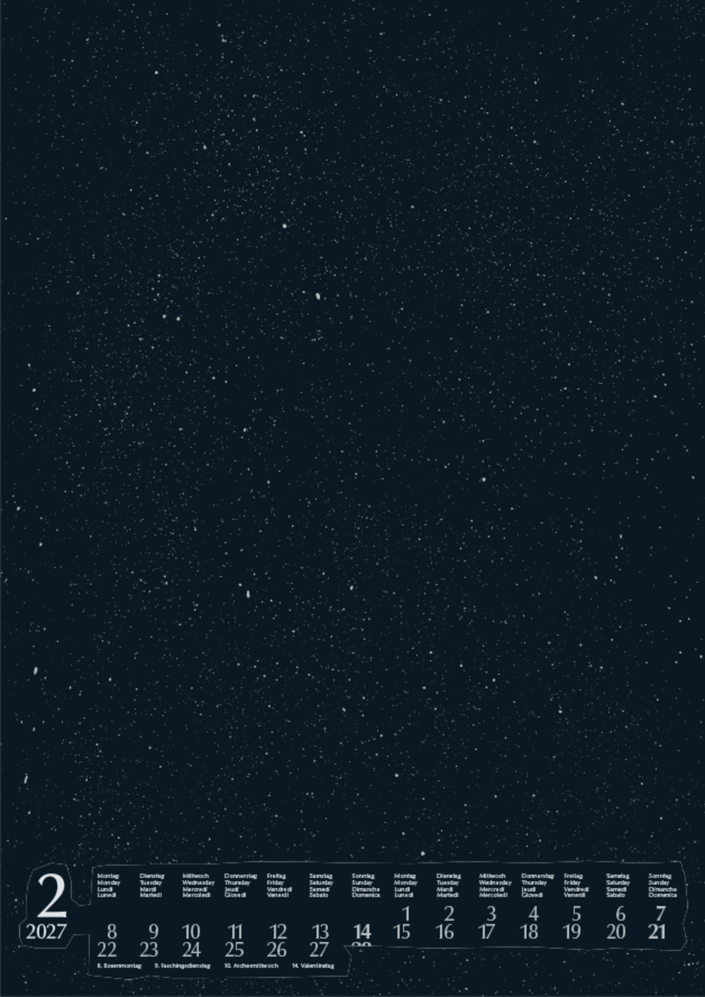 • Mehrsprachiges Kalendarium mit Feiertagen für Deutschland, Österreich und Schweiz