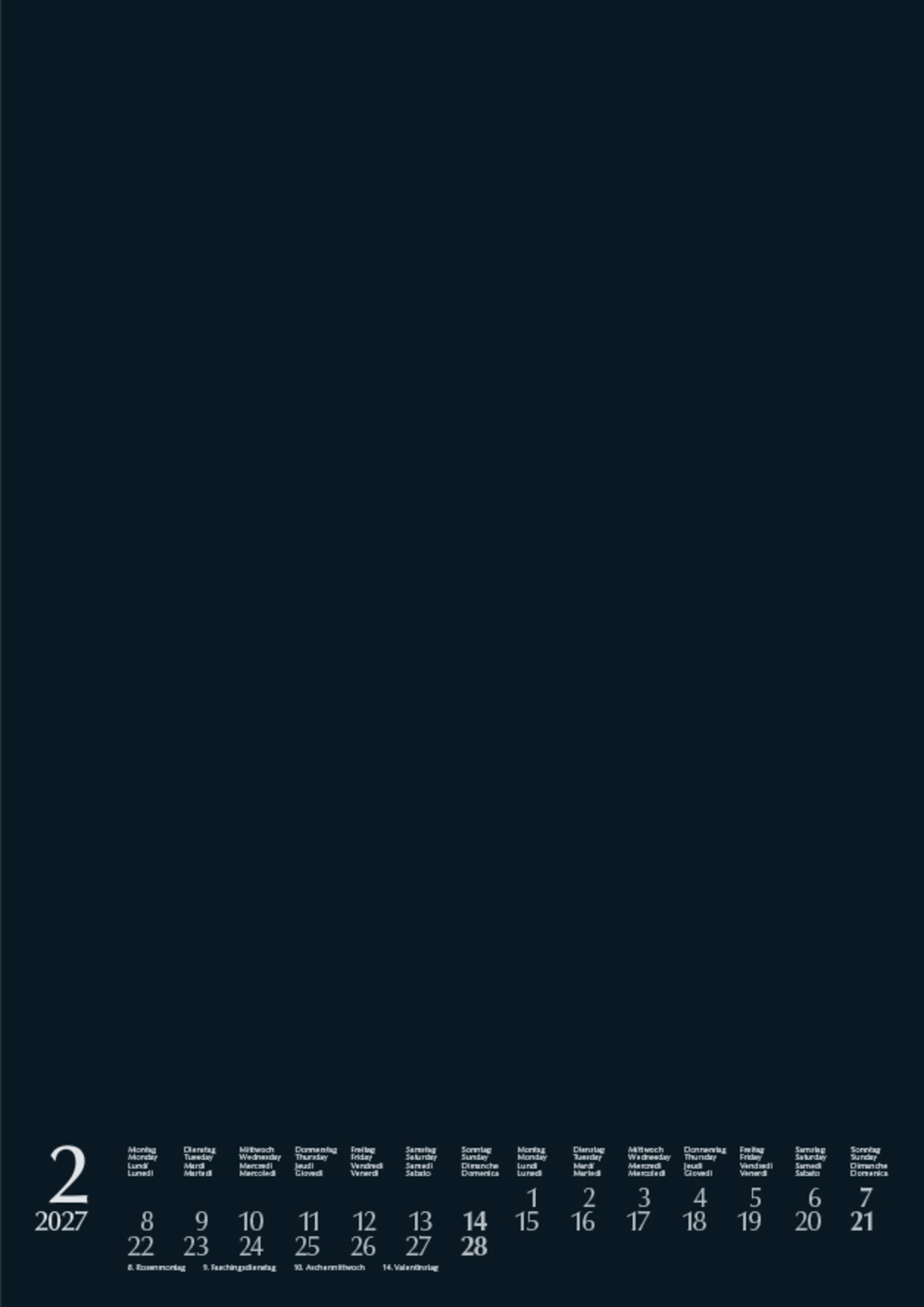 • Mehrsprachiges Kalendarium mit Feiertagen für Deutschland, Österreich und Schweiz