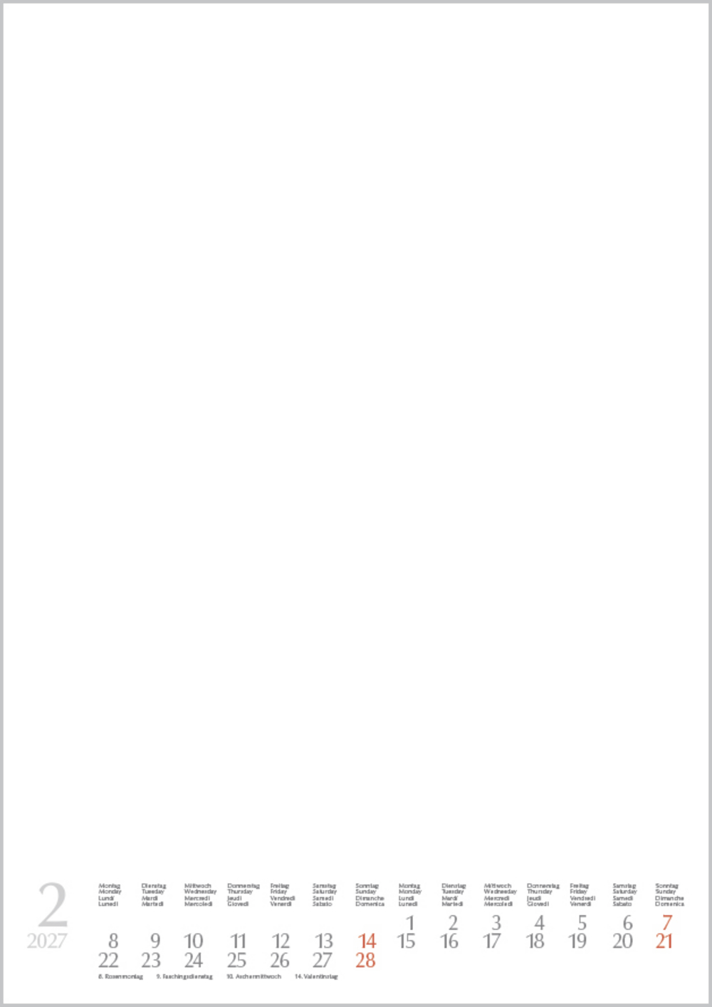 • Mehrsprachiges Kalendarium mit Feiertagen für Deutschland, Österreich und Schweiz