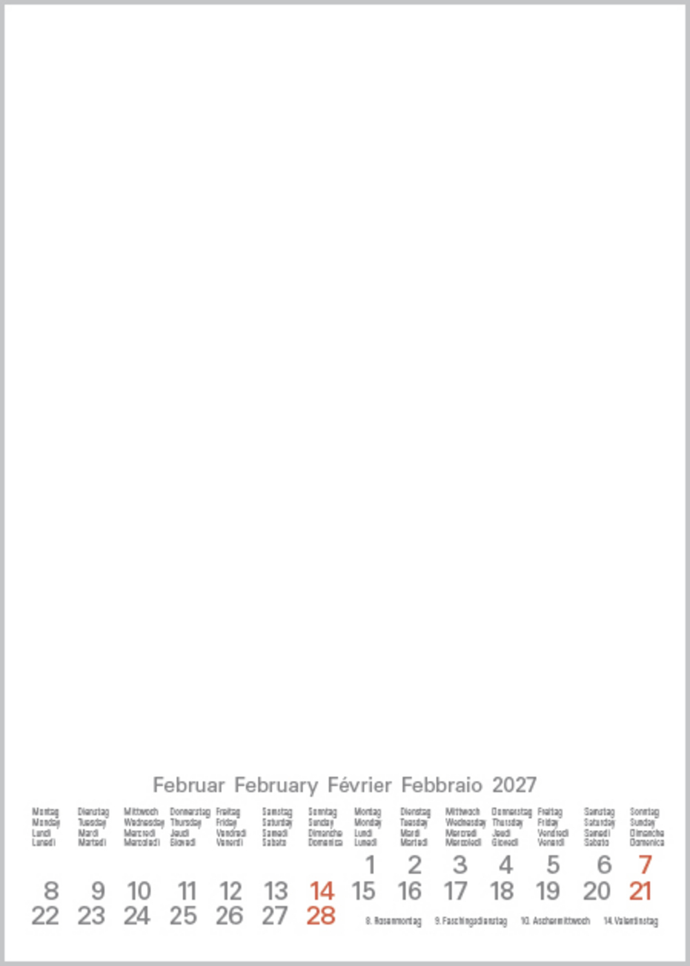 • Mehrsprachiges Kalendarium mit Feiertagen für Deutschland, Österreich und Schweiz