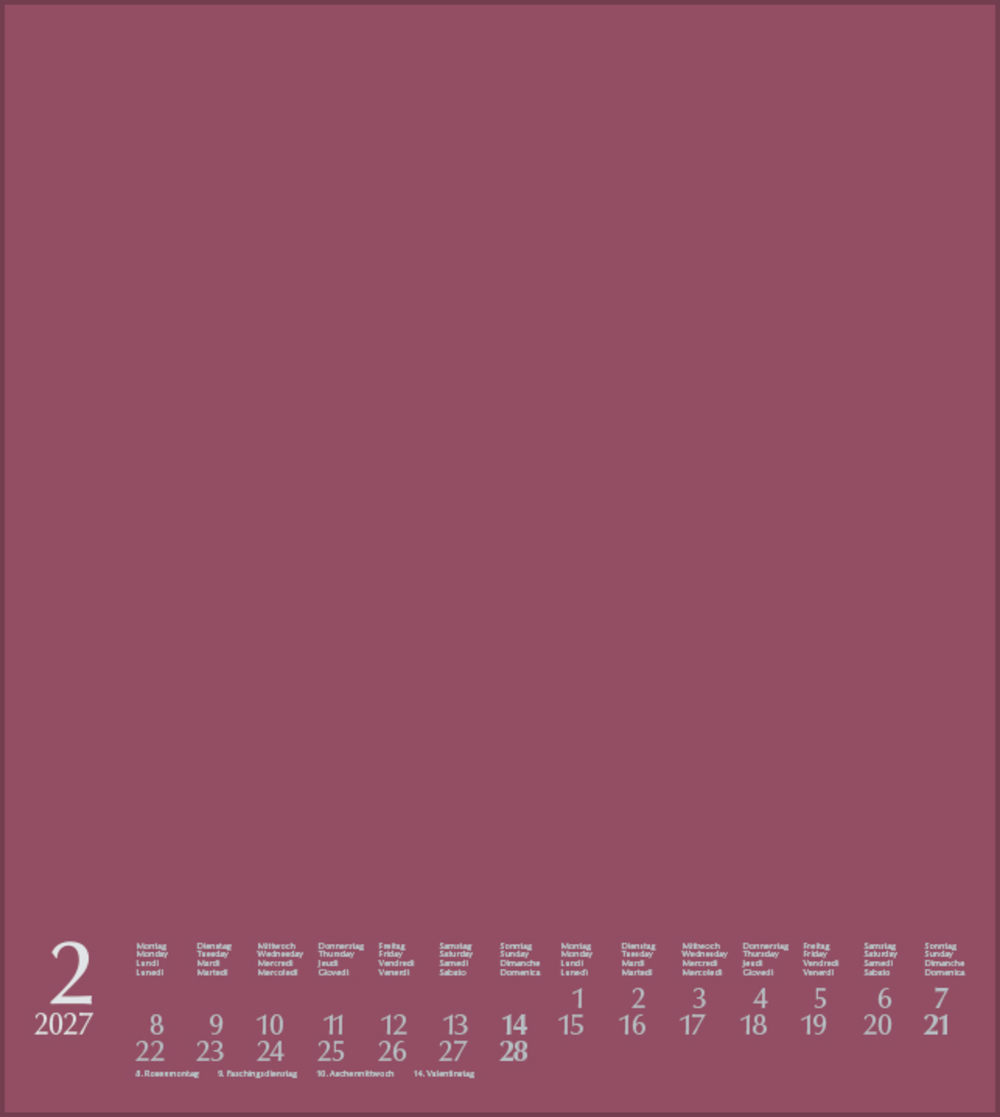 • Mehrsprachiges Kalendarium mit Feiertagen für Deutschland, Österreich und Schweiz