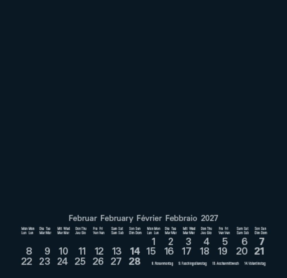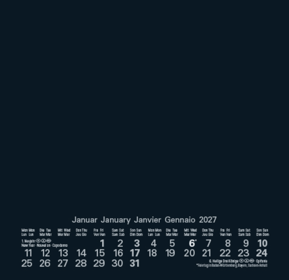 • Mehrsprachiges Kalendarium mit Feiertagen für Deutschland, Österreich und Schweiz