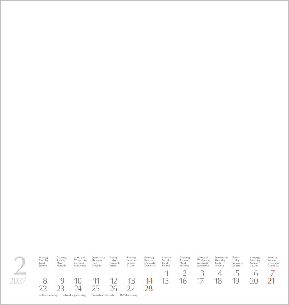 • Mehrsprachiges Kalendarium mit Feiertagen für Deutschland, Österreich und Schweiz