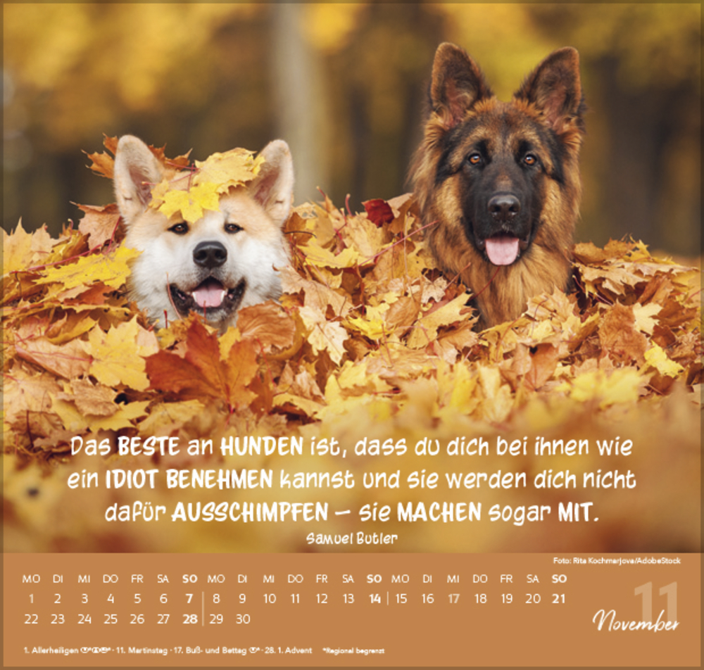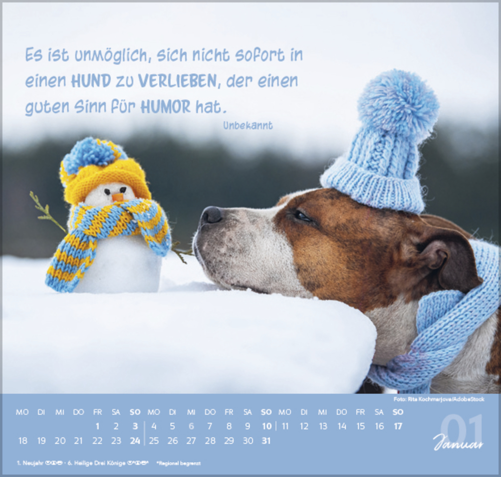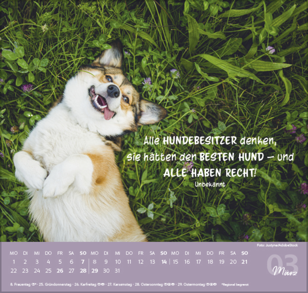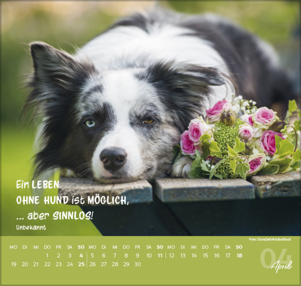 Ein Leben ohne Hund ist möglich, aber sinnlos! Für alle, die dieses Motto sofort unterschreiben würden, ist dieser Kalender das ideale Geschenk. Jeder Monat zeigt ein charmantes Hundefoto, kombiniert mit einem witzigen Zitat, in dem sich jeder Hundebesitzer sofort wiederfindet.