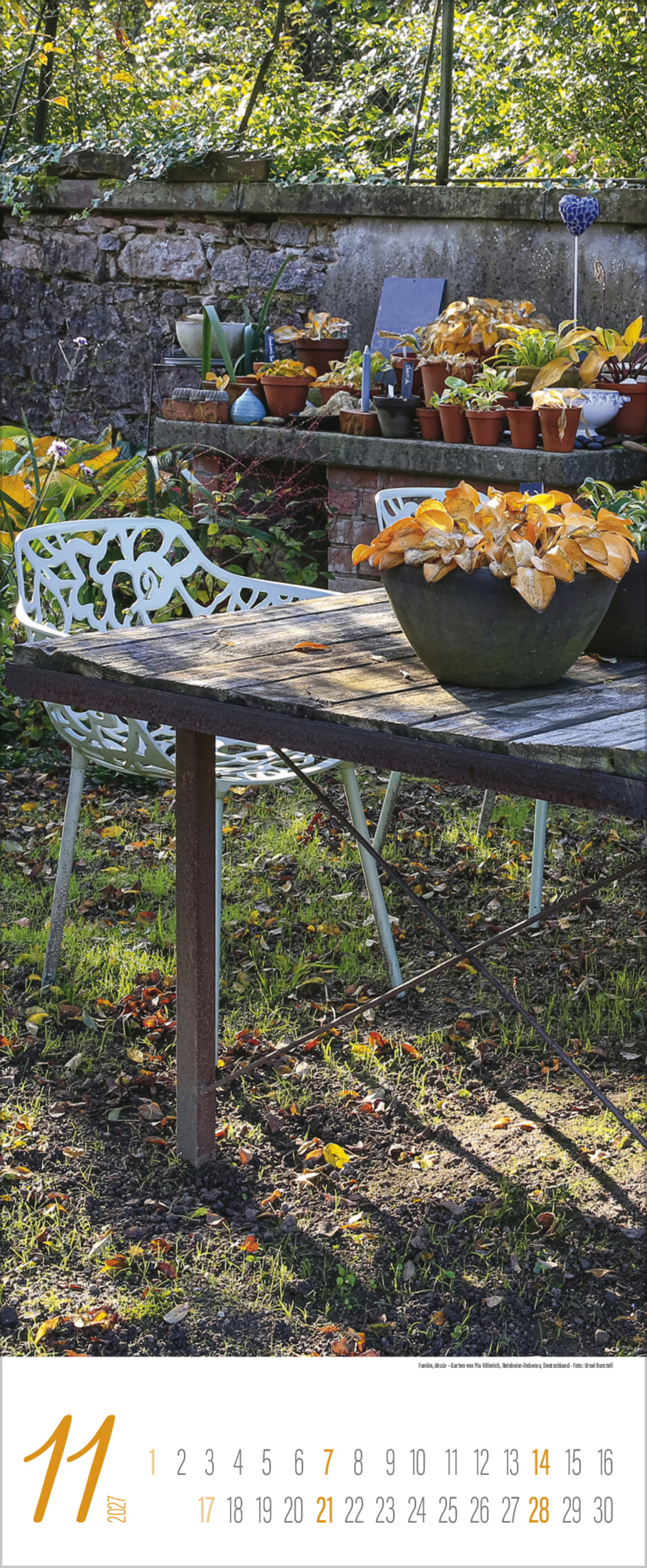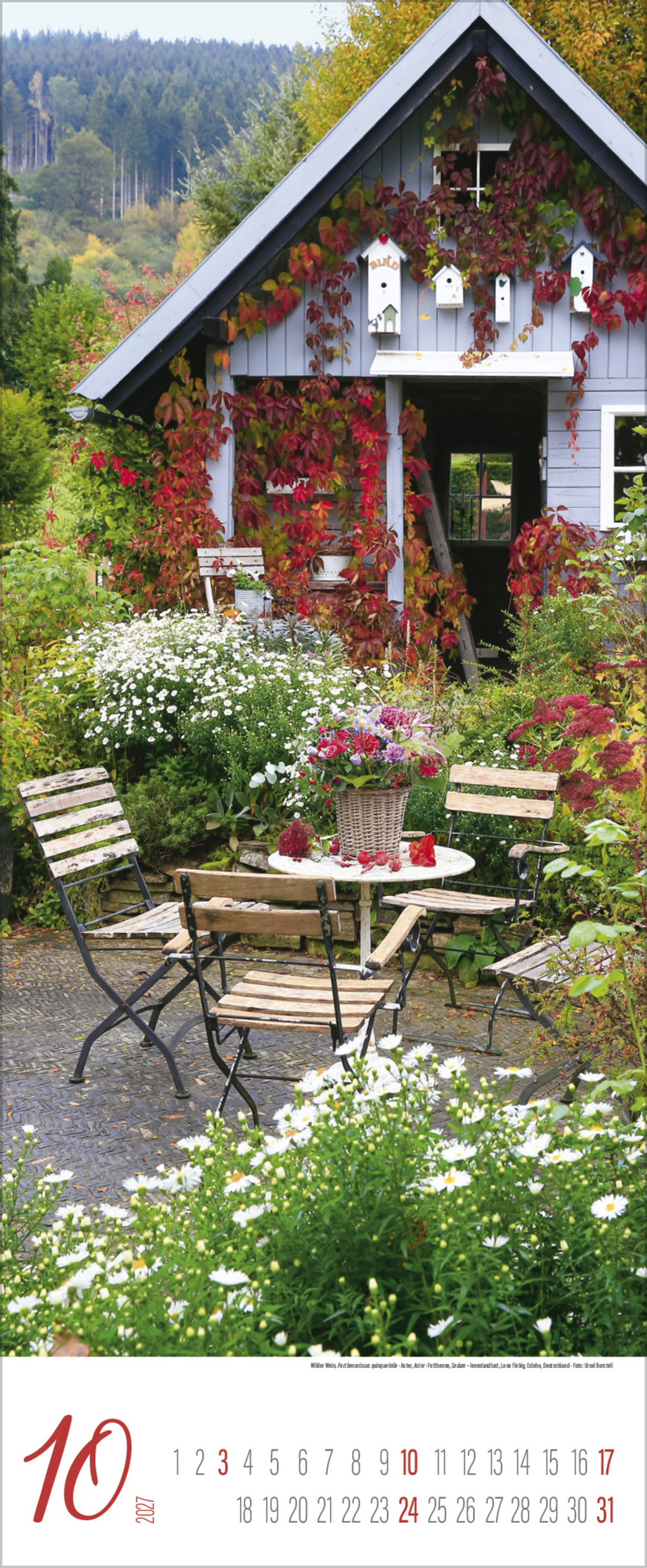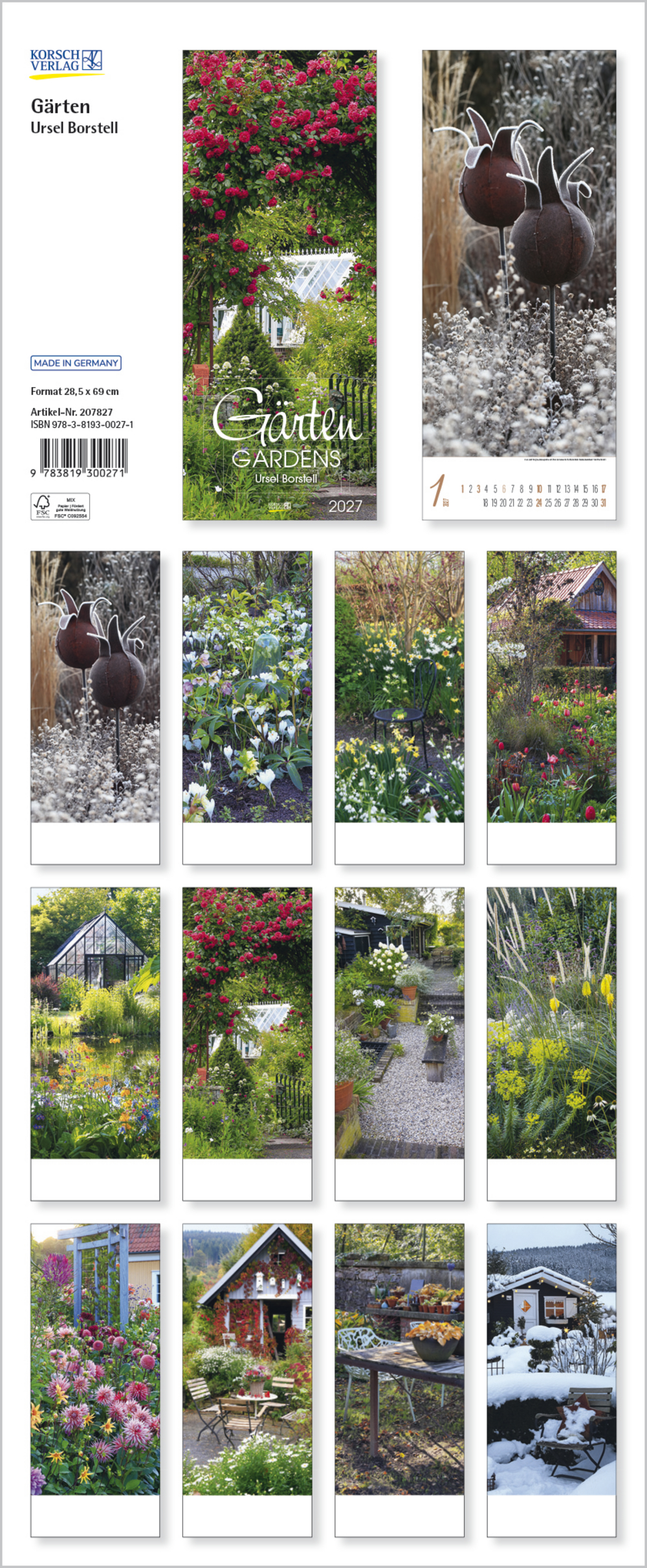 Die renommierte Fotografin Ursel Borstell hat für diesen Kalender das Flair romantischer Gärten aus einer besonderen hochformatigen Perspektive entdeckt. Eine Vielfalt blühender Pflanzen, interessant gestalteter Anlagen und Arrangements begleitet GartenliebhaberInnen durch alle Jahreszeiten.