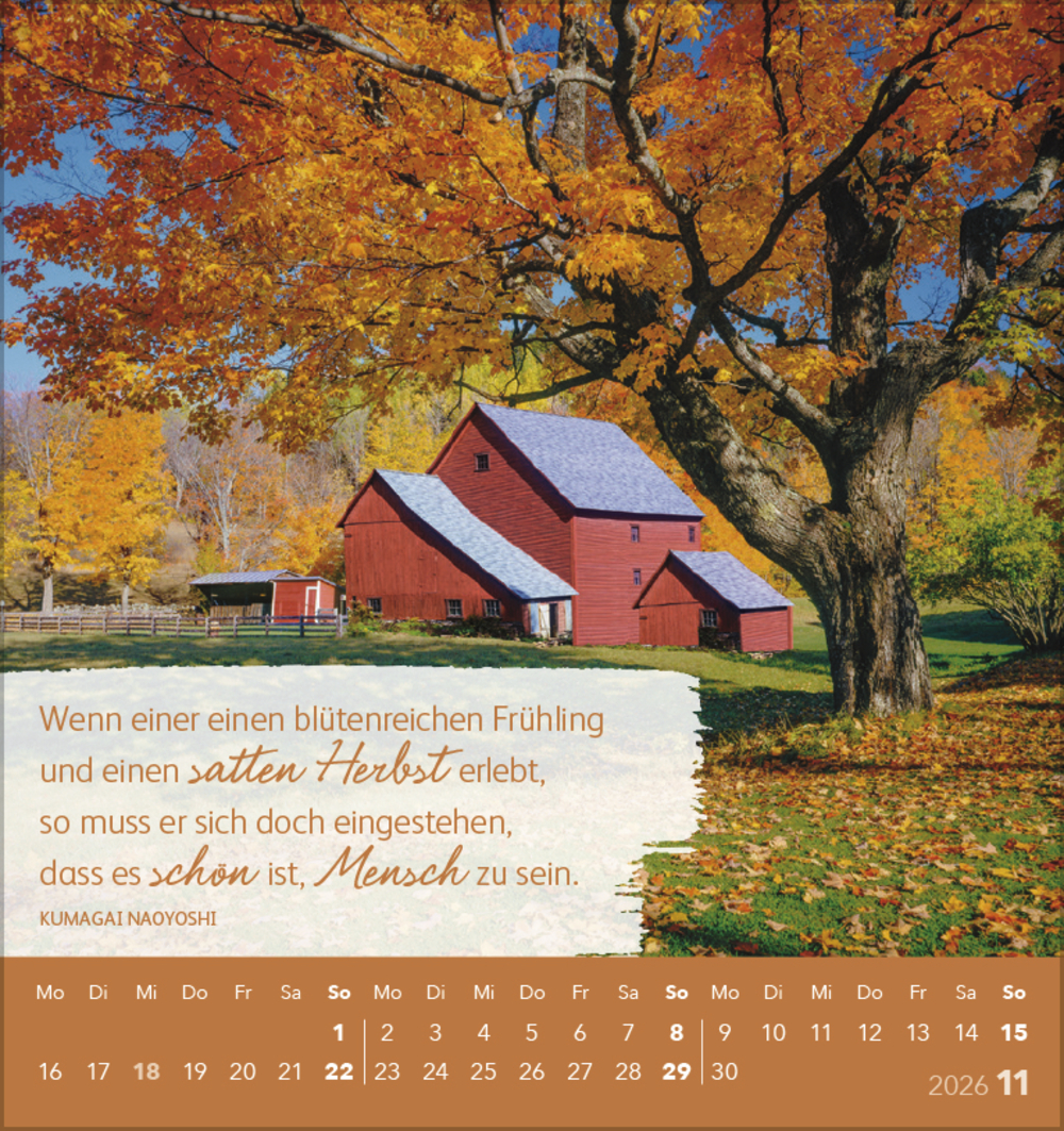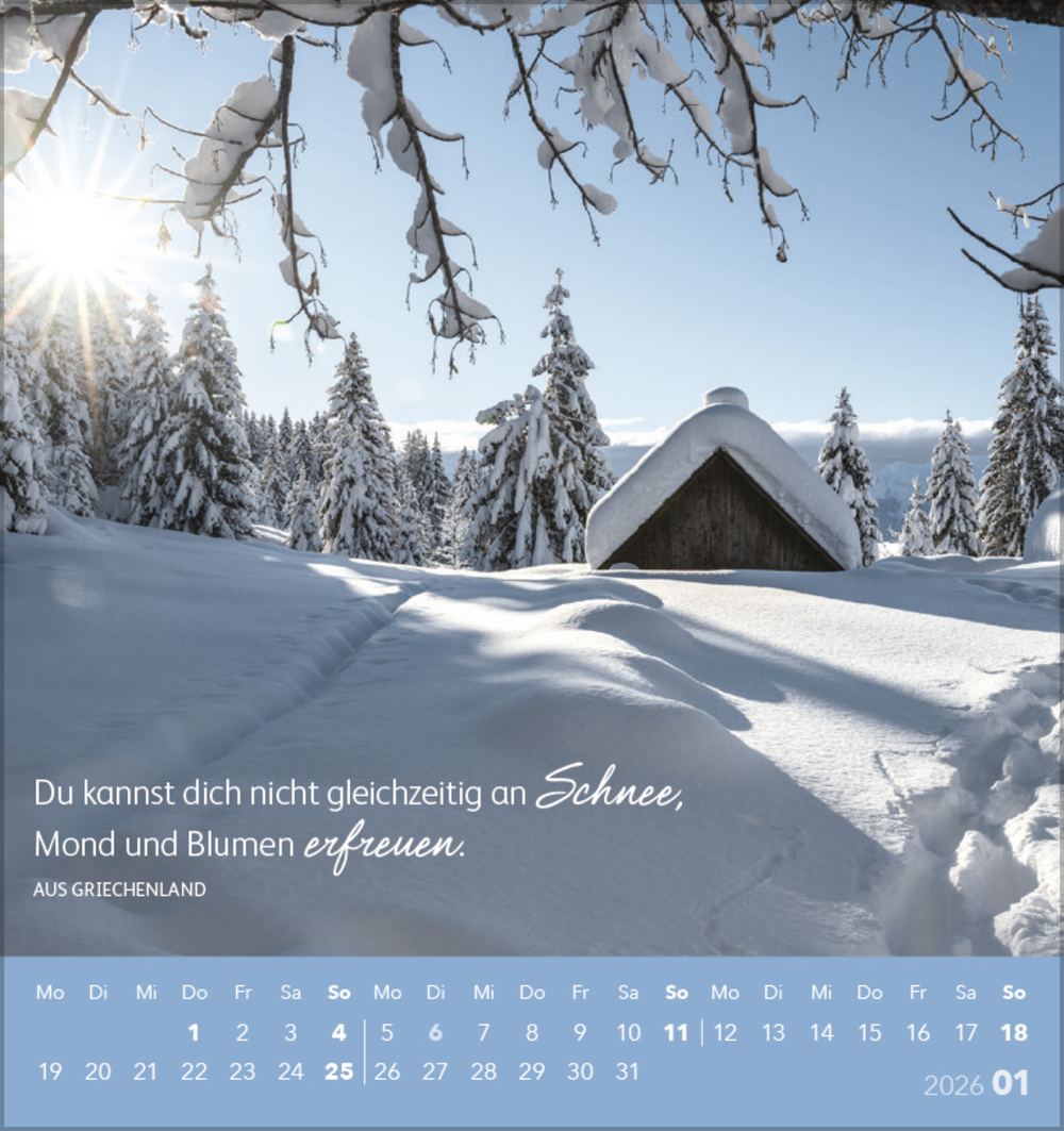Wunderschöner aufstellbarer Postkartenkalender mit bezaubernden Fotos und passenden Zitaten, die einem aus der Seele sprechen.