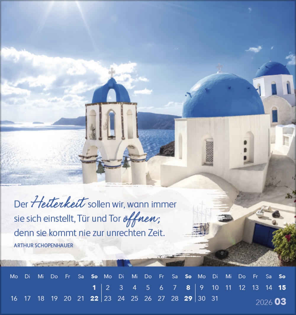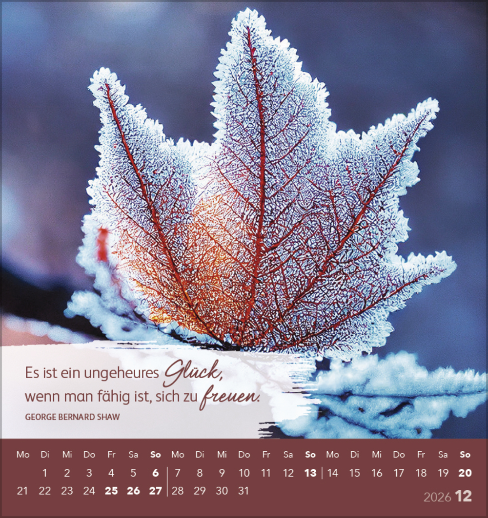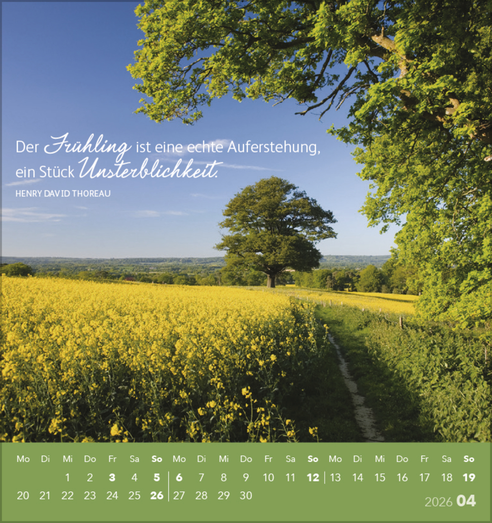 Jedes Kalenderblatt ist so gestaltet, dass es einfach abzutrennen ist. Somit können Sie jeden Monat eine Postkarte mit einem schönen Spruch versenden oder verschenken.
