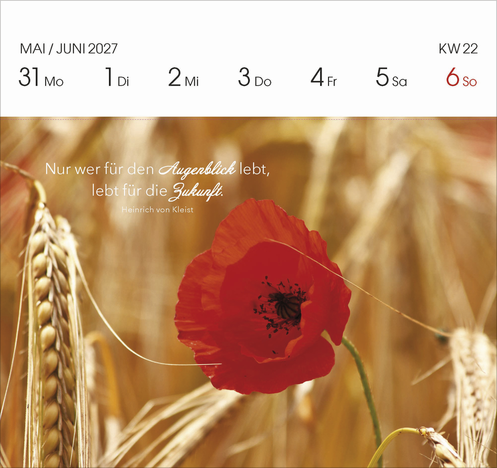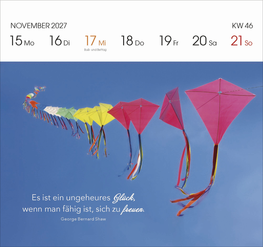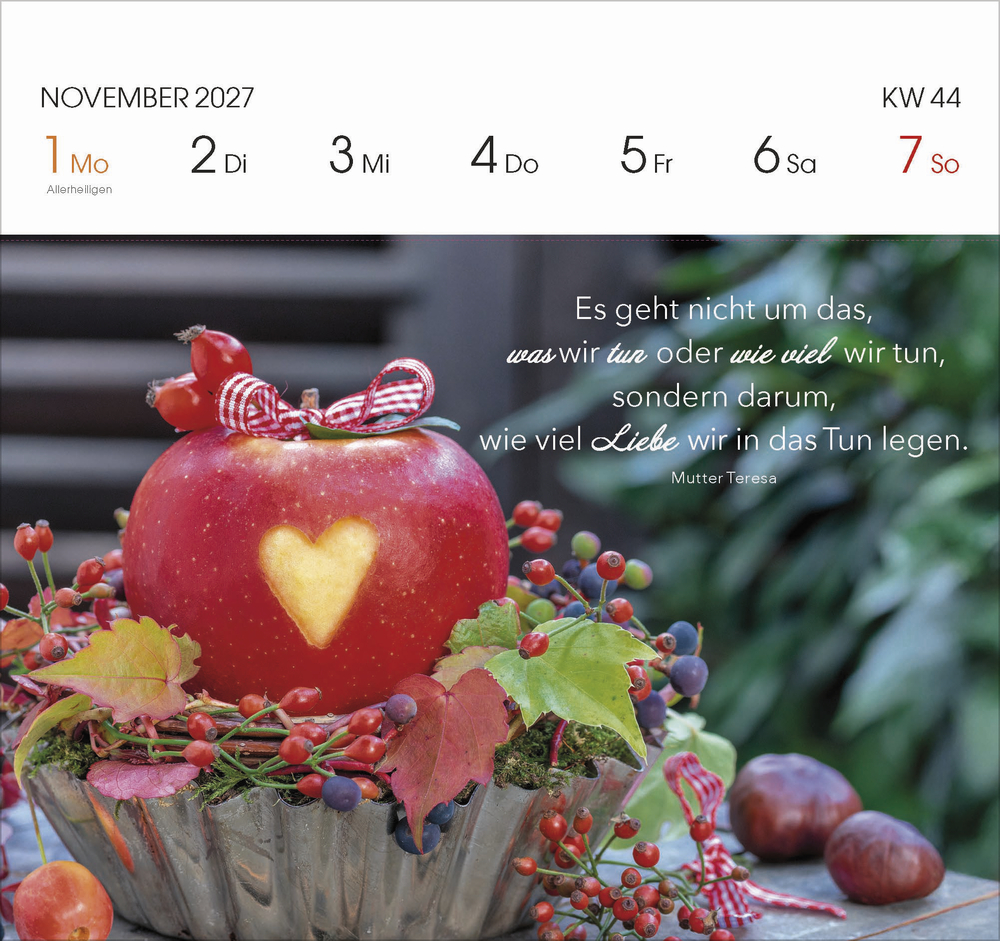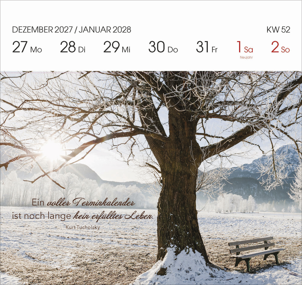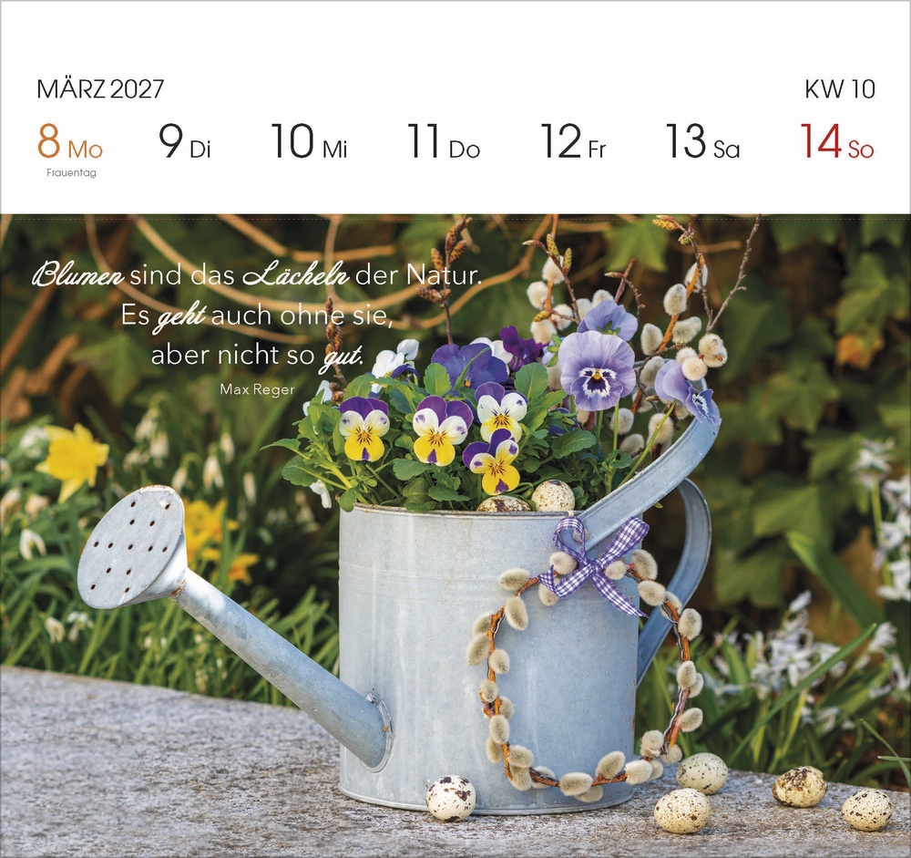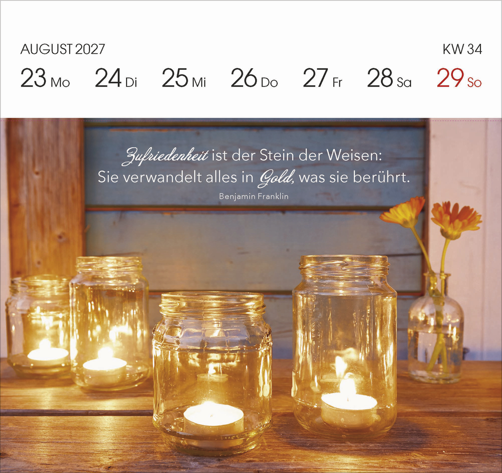 Jedes Kalenderblatt ist so gestaltet, dass es einfach abzutrennen ist. Somit können Sie jede Woche eine Postkarte mit einem schönen Spruch versenden oder verschenken.