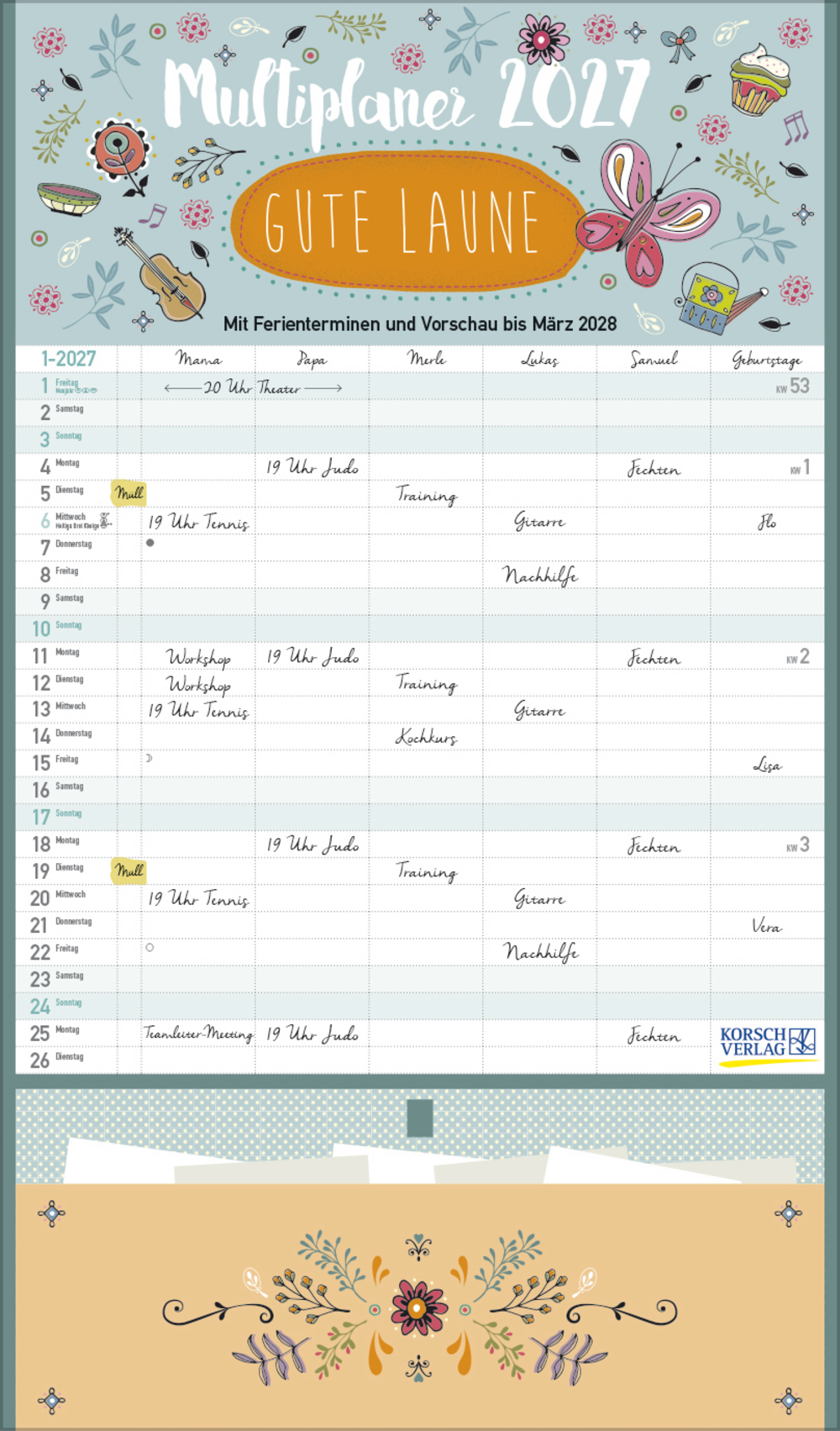 - Übersichtlicher Familienplaner mit 6 Spalten; sehr stabile Rückwand; 27 x 46 cm
