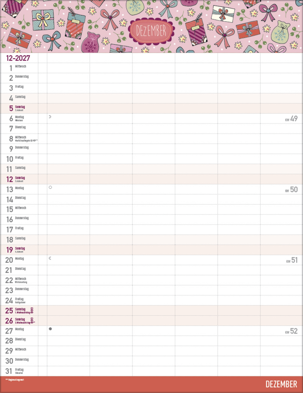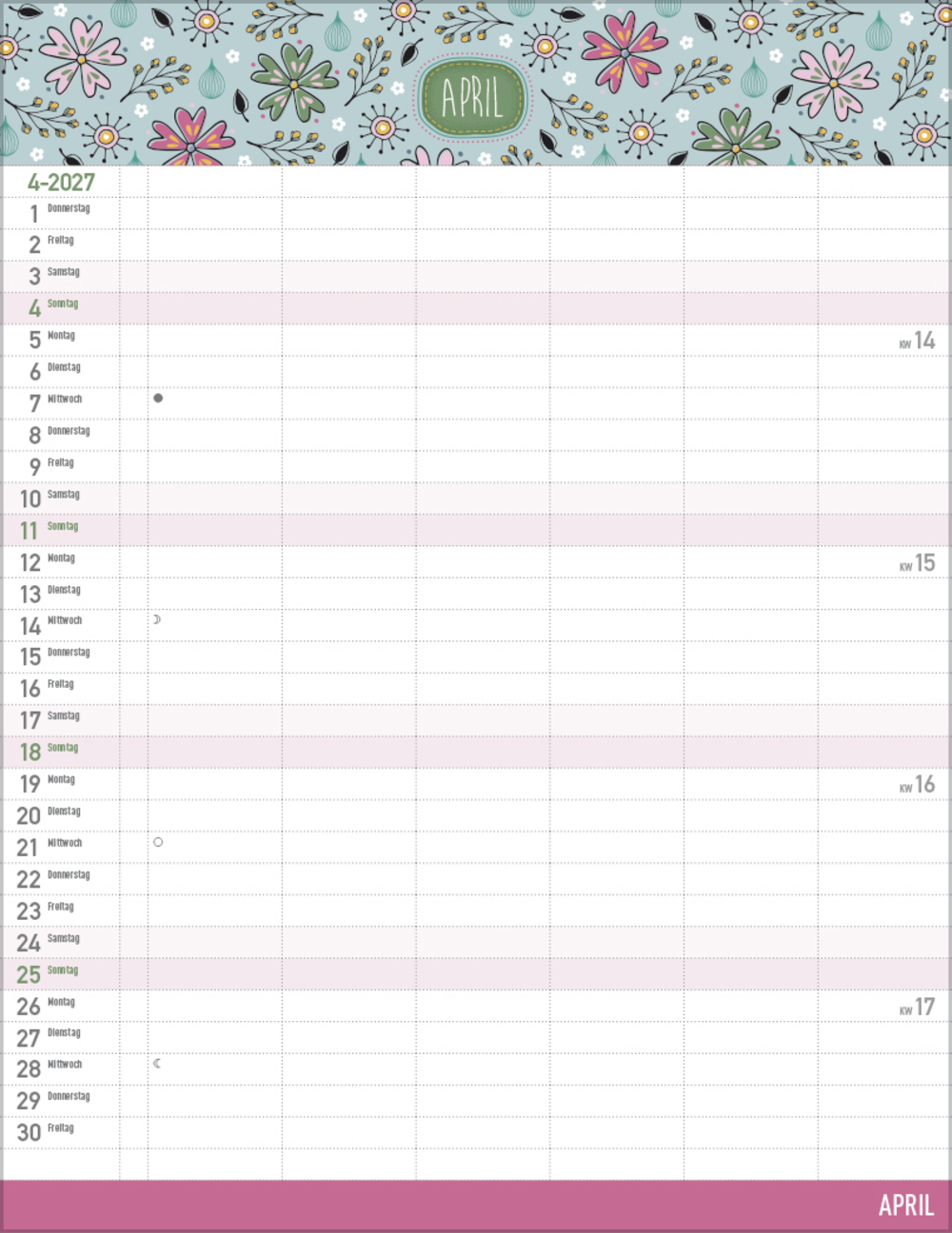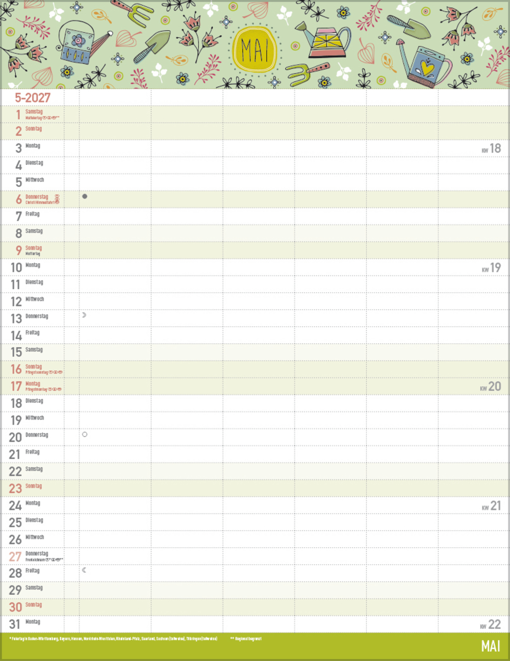 - Praktische Zusatzspalte für Ferien, Müll und weitere Aktivitäten