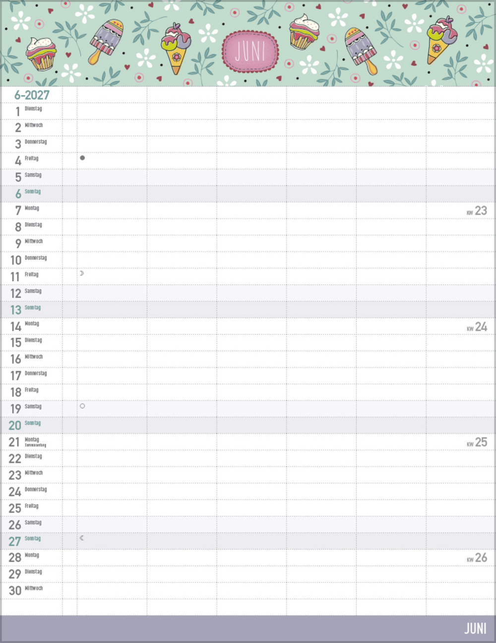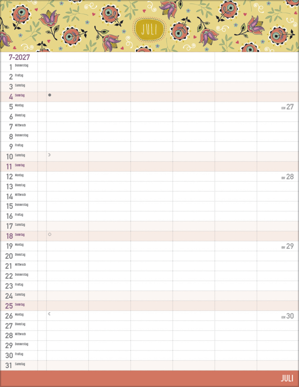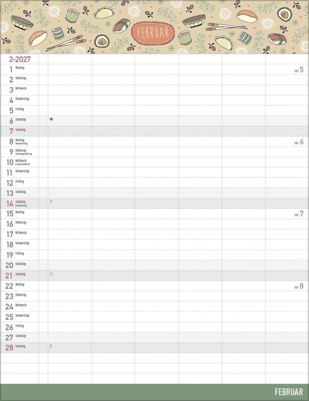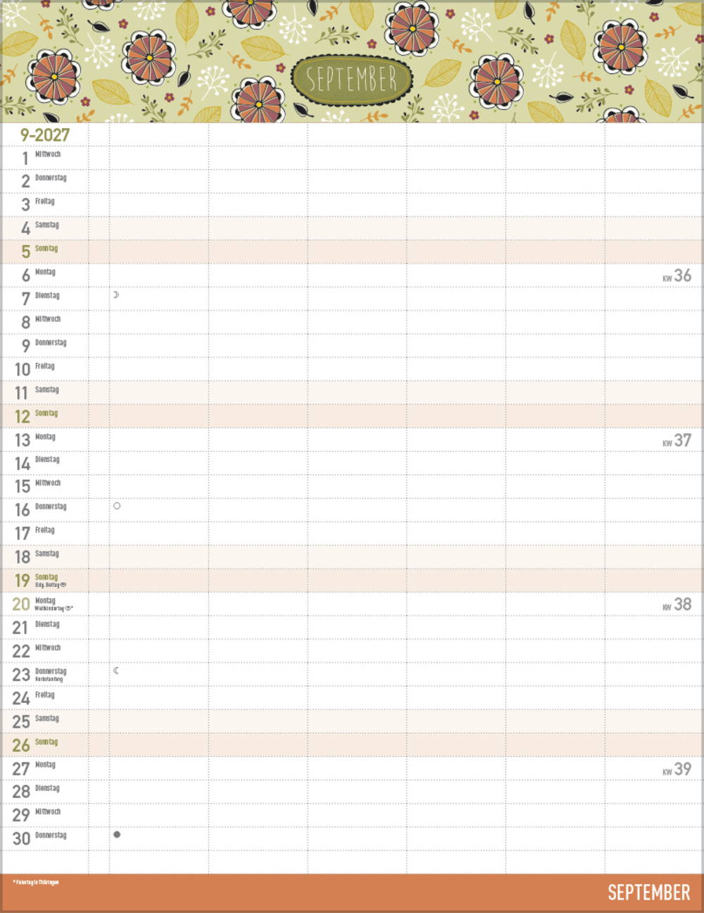 - Praktische Zusatzspalte für Ferien, Müll und weitere Aktivitäten