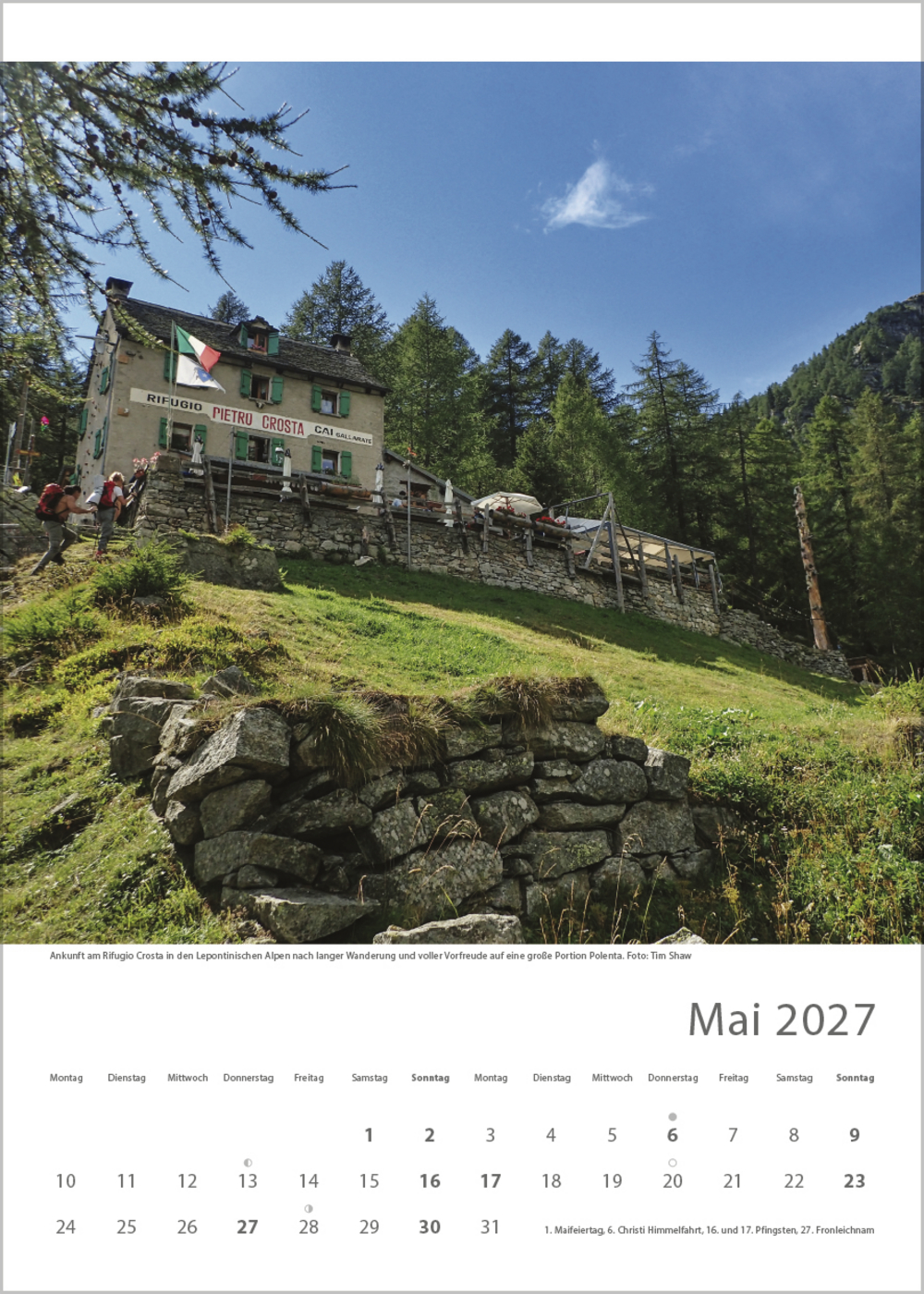 Der ideale Jahresbegleiter für alle, die das Wandern in den Bergen lieben. Jedes Monatsblatt zeigt ein reizvolles Ausflugsziel in den Alpen und führt mit einer ausführlichen Tourenbeschreibung und Kartenmaterial auf der Rückseite gleich direkt zum Ziel.