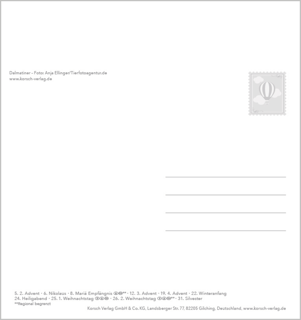 Aufstellbarer Postkartenkalender mit bezaubernden Fotos unserer treuen Begleiter.