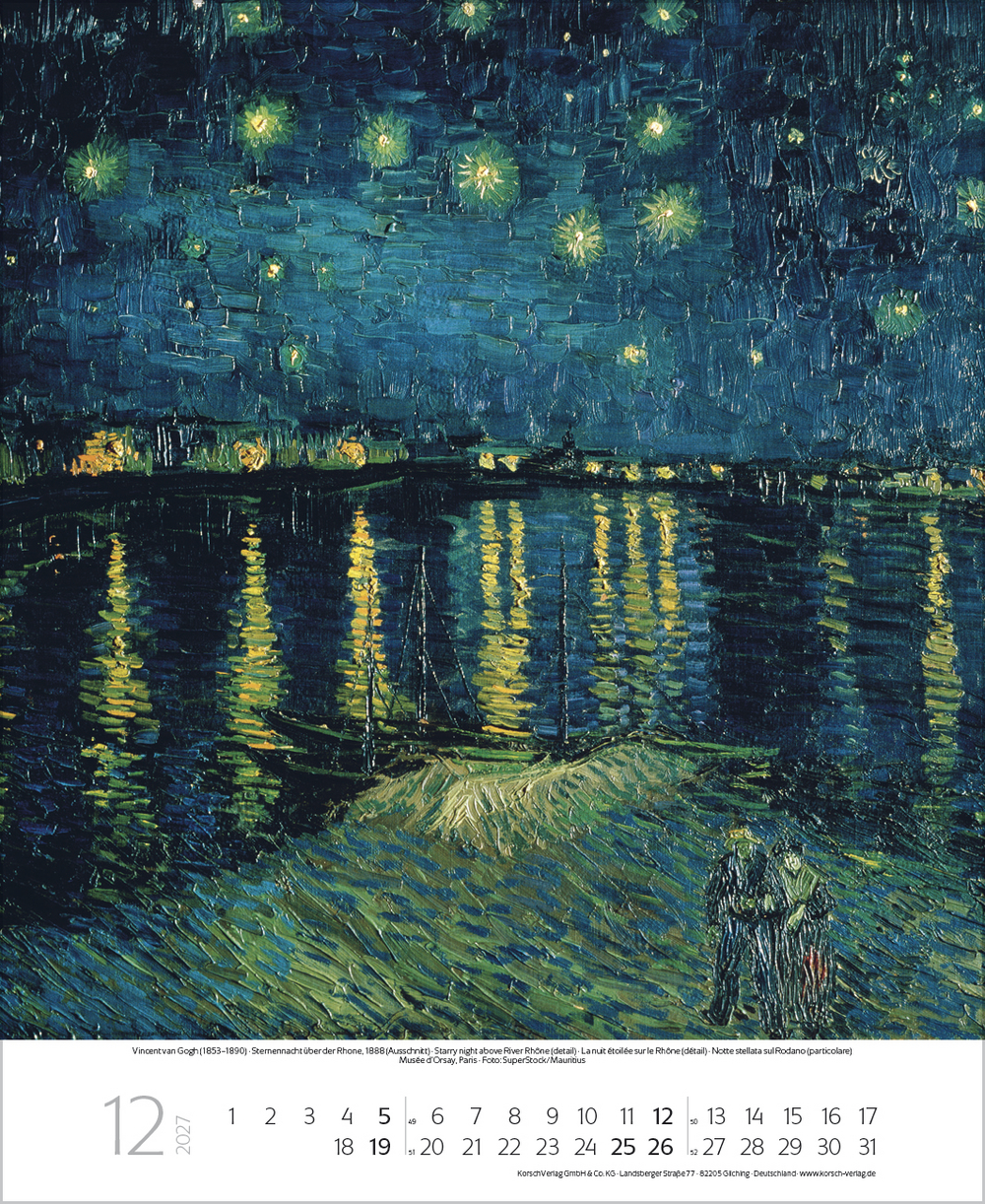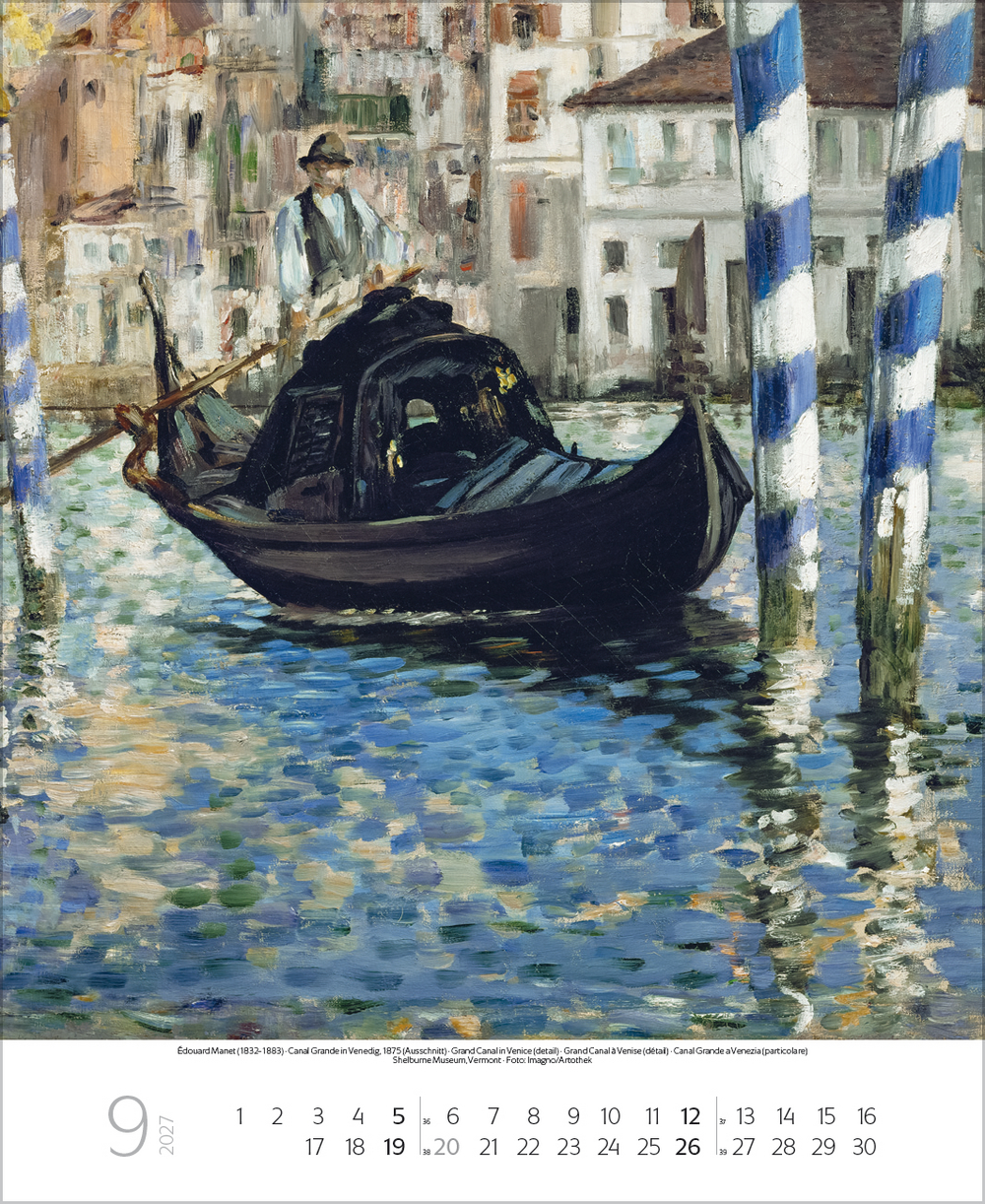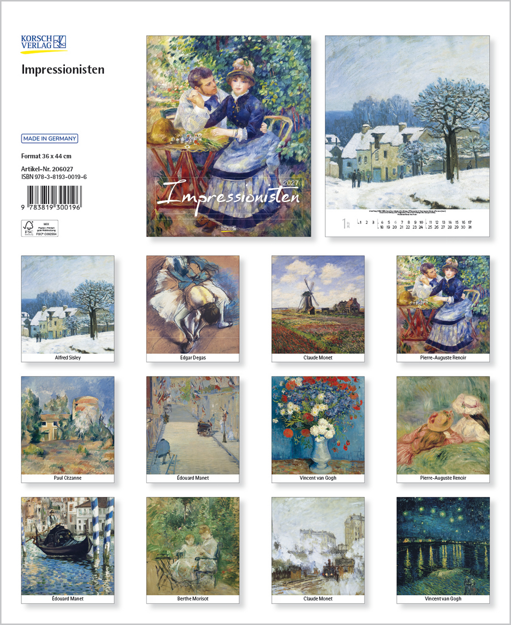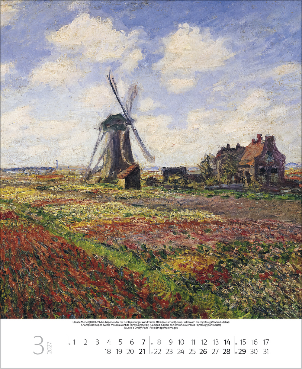 Dieser beliebte Kalender zeigt eine Auswahl der schönsten Bilder aus der Epoche des Impressionismus.