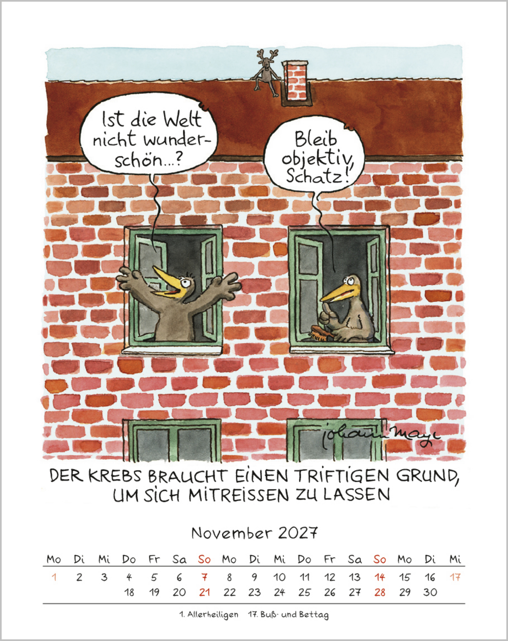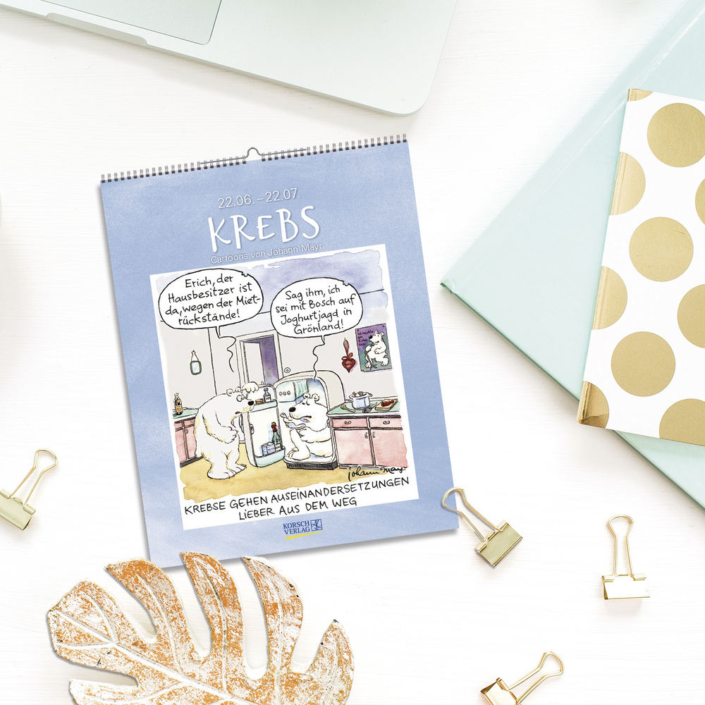 Der erfolgreiche Sternzeichenkalender mit charmanten und witzigen Cartoons für jeden Monat von Johann Mayr.