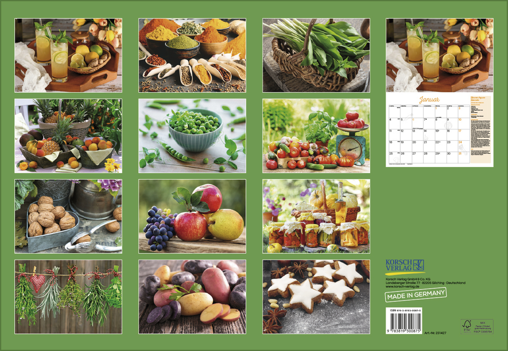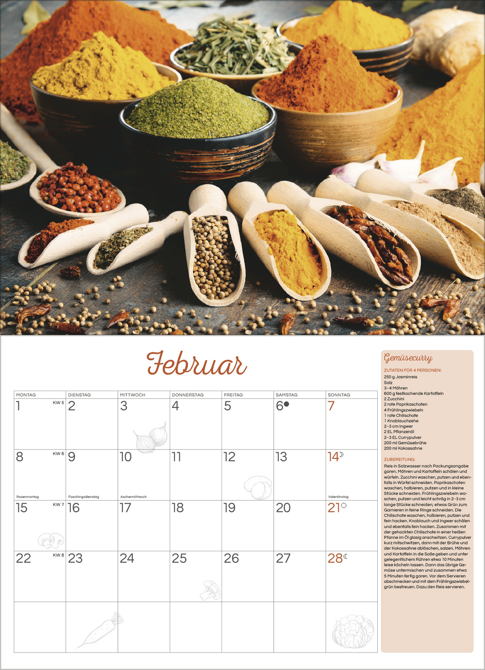 Der praktische Küchenkalender zeigt zwölf herrliche Food-Stillleben mit Rezepten für leckere Gerichte zu jeder Jahreszeit.