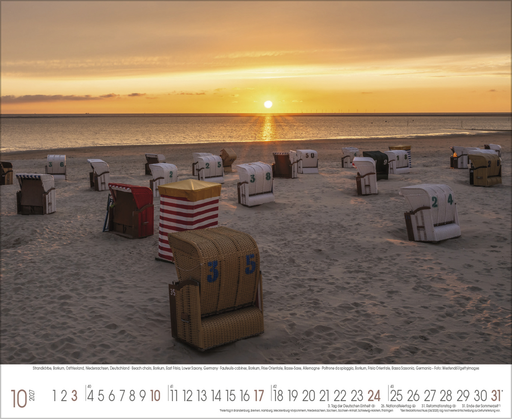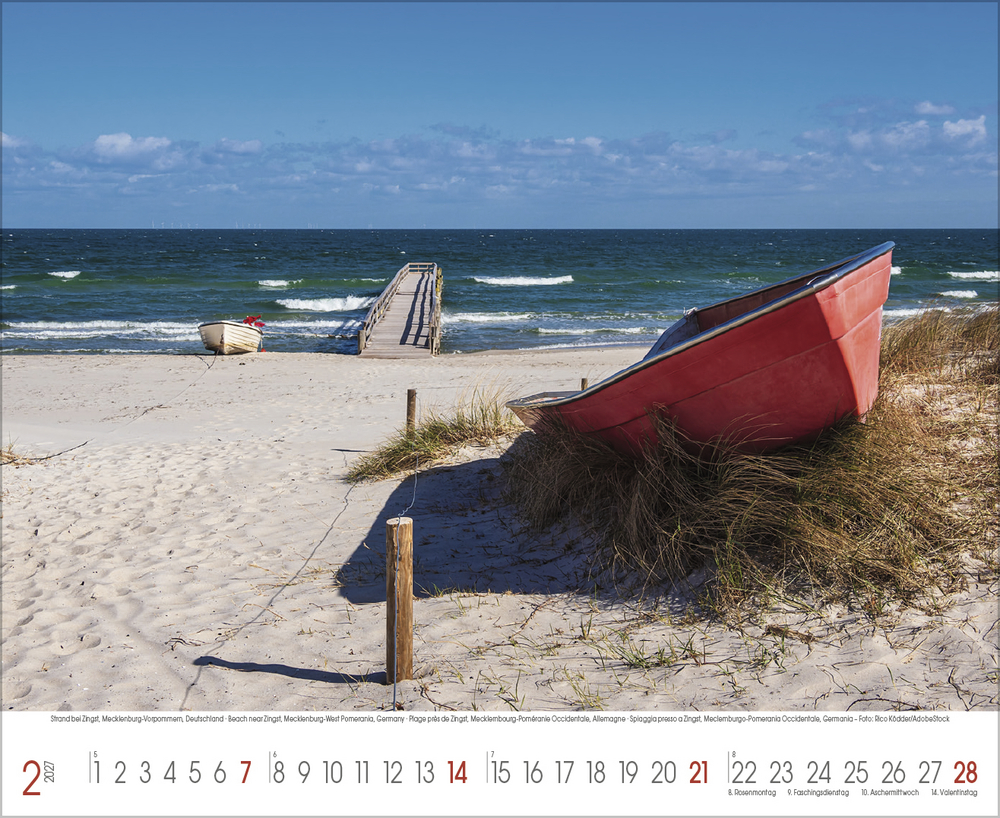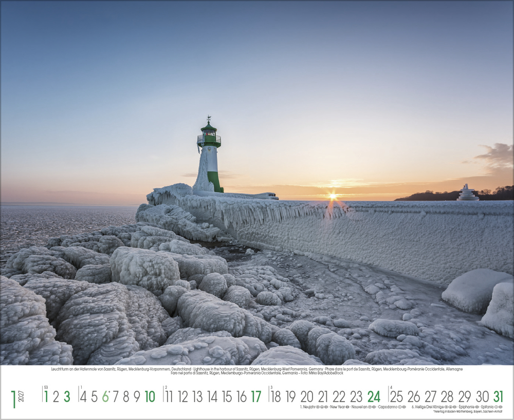 Der Kalender Küstenträume präsentiert eine Sammlung stimmungsvoller Fotografien, die die raue Schönheit der Nordsee und die sanften Wellen der Ostsee eindrucksvoll einfangen. Jede Aufnahme zeigt die Vielfalt und den Charakter dieser einzigartigen Küstenregionen – von windgepeitschten Dünen und endlosen Sandstränden bis hin zu romantischen Sonnenuntergängen und dramatischen Wolkenformationen. Perfekt für alle, die das Meer lieben und sich ein Stück Urlaubsfeeling in den Alltag holen möchten.