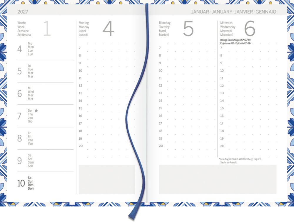 - Praktische Wochenübersicht: Jede Kalenderwoche übersichtlich auf 4 Seiten!