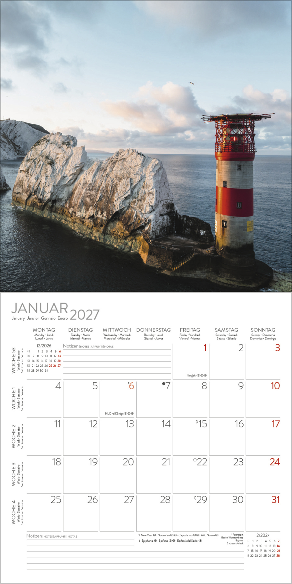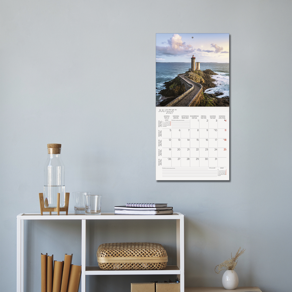 - Jede Kalenderseite mit großem Bild und viel Platz im Kalendarium für Notizen und Termine